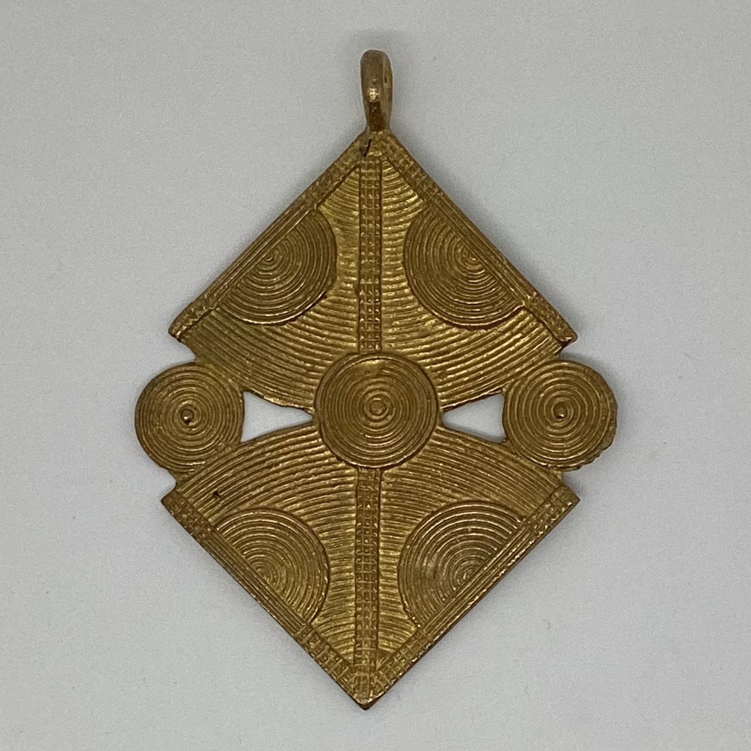 A statement piece for everyday or formal wear. Beautiful lost wax cast brass pendant skillfully made by artisans in Ghana. 3”.