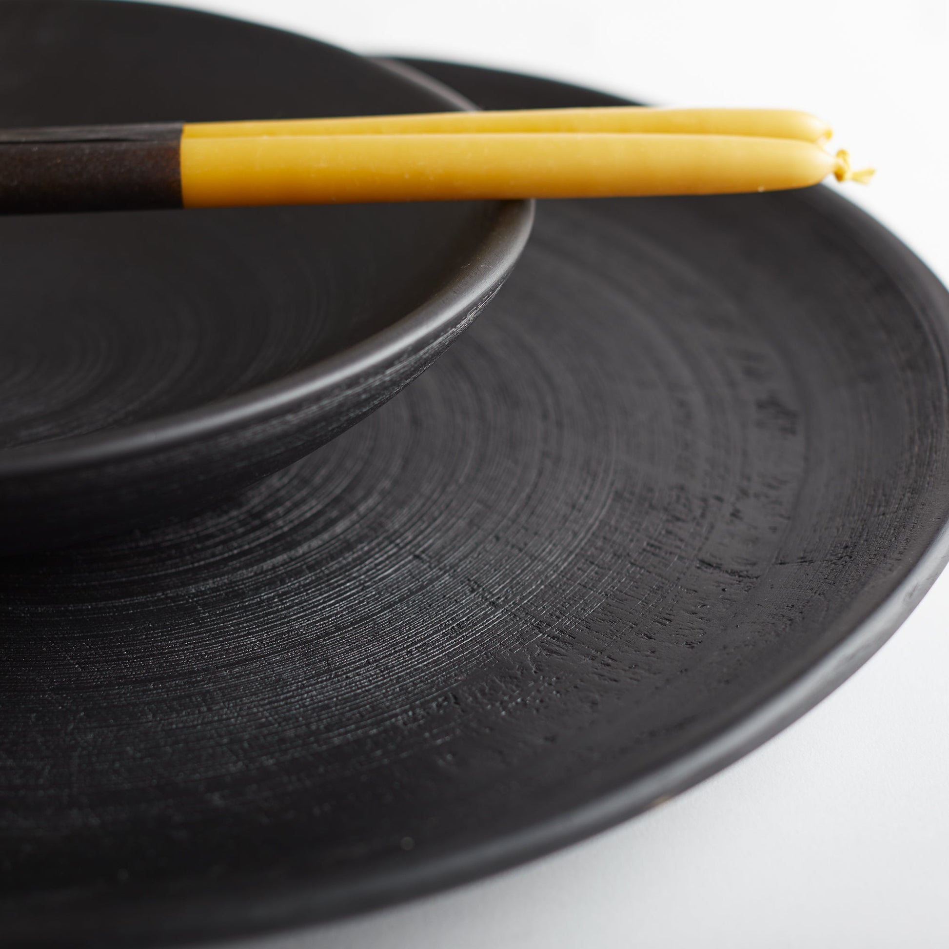 Seasoned, kiln-dried mango wood is shaped by hand to create this large, rounded display tray. Its generous size, grooved texture and dark color make it an interesting way to hold mail, napkins or fruit, or to present a medley of appetizers. Place it atop an ottoman for an instant side table, or use it to showcase an assortment of votives and pillar candles in a unique centerpiece.