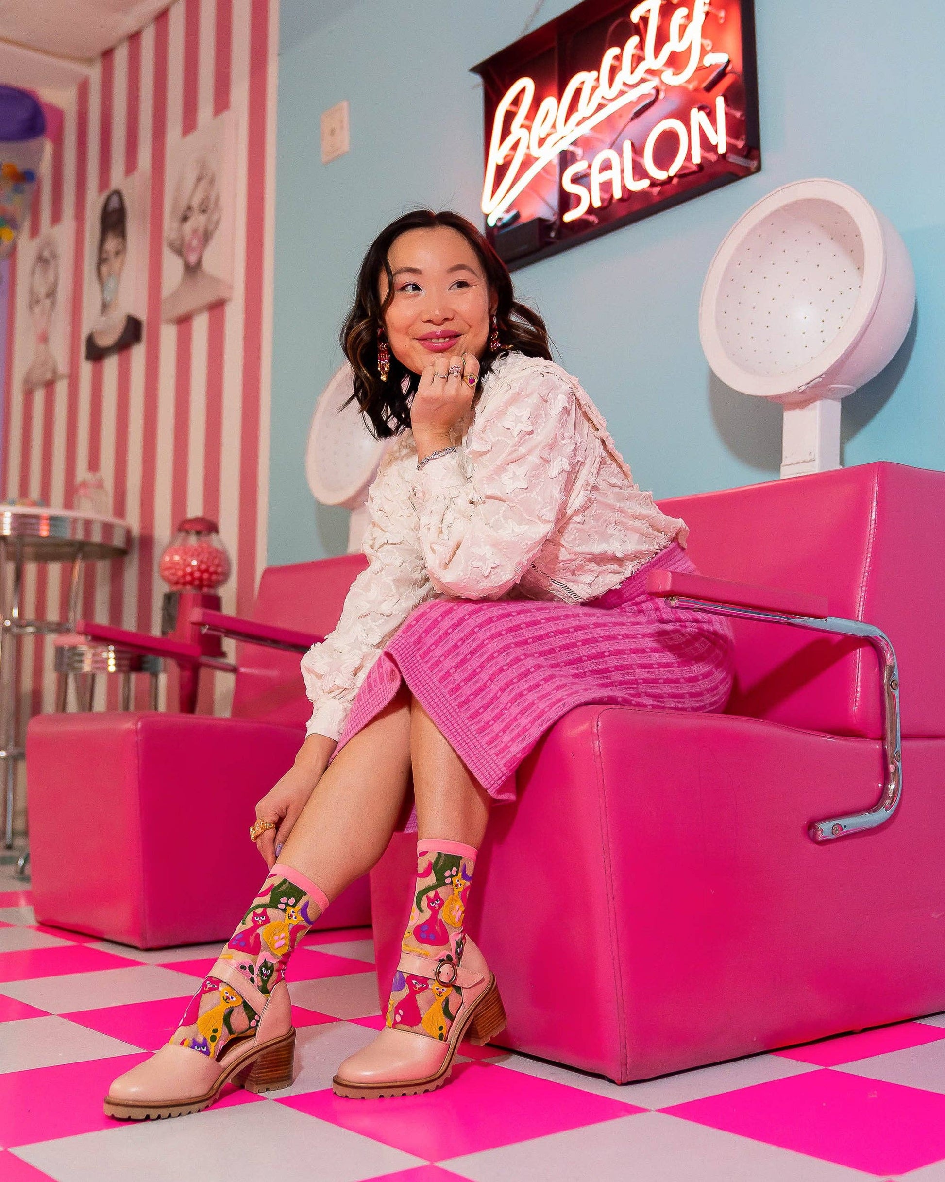 Dopamine Cats Sheer Crew Sock