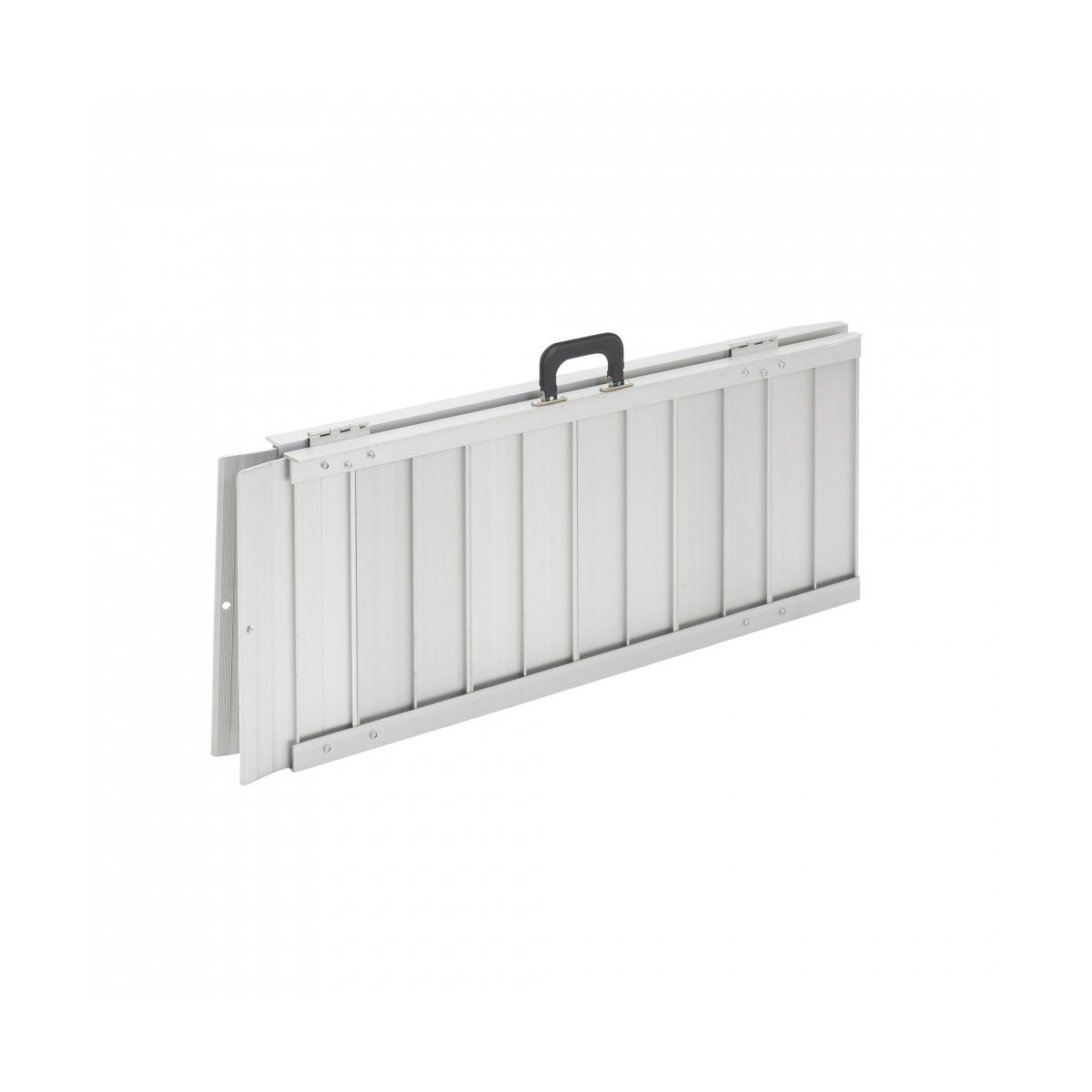 The Wheelchair and Scooter Ramp by Drive Medical is designed for transitioning a wheelchair or scooter from one surface height to another. The durable, folding, lightweight construction allows for the ramp to be easily transported in its carry bag. This ramp was especially designed with perforated slots to keep water from collecting on the ramp and ensuring users safety while in use. This 3'L x 30"W ramp allows for up to a 6"" rise in surface height.