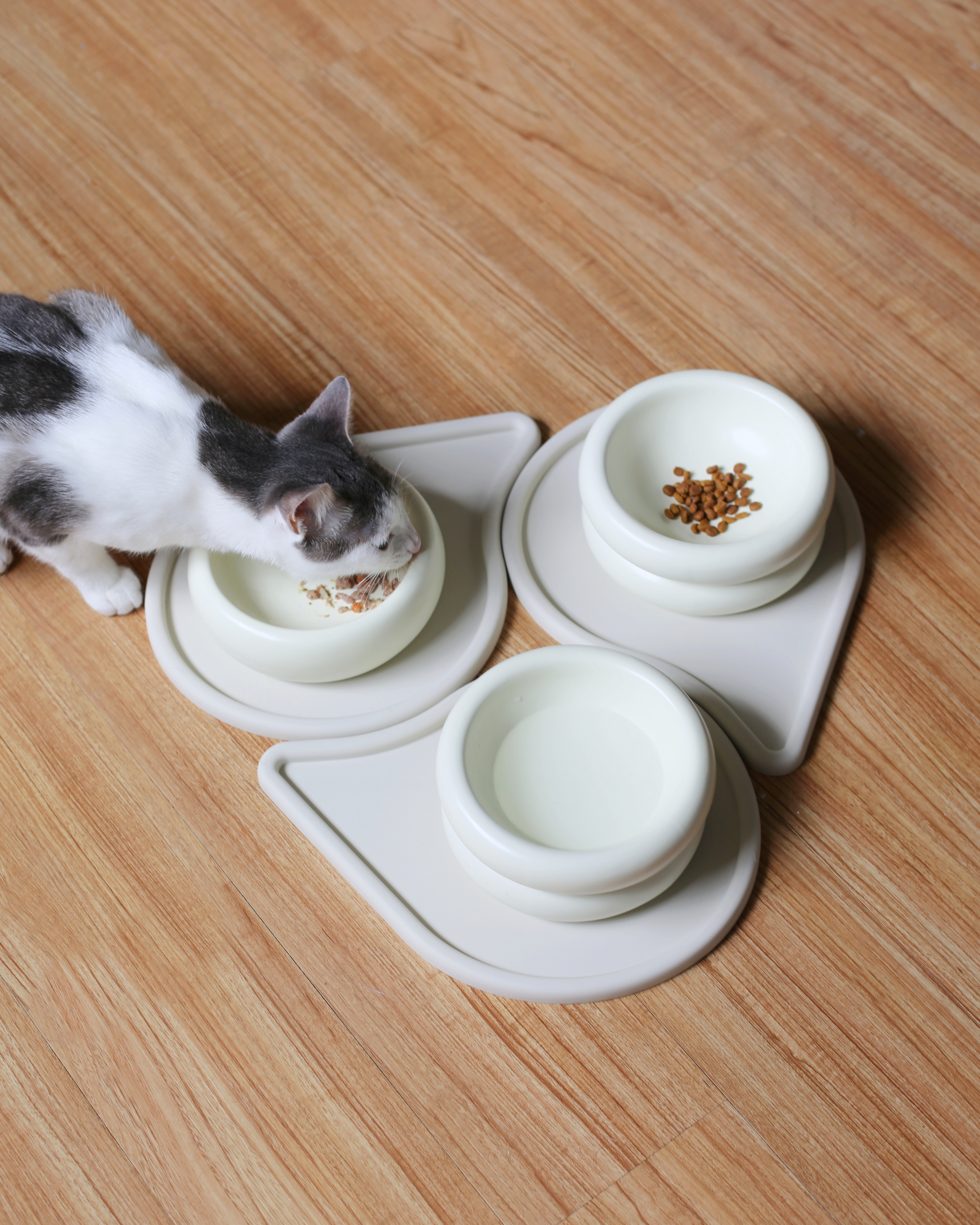 By marrying simplicity with profound functionality, our raindrop-shaped pet feeding mat is designed to interlock seamlessly, creating beautiful, fluid patterns on any surface of your home. Each Drop pet meal mat features a raised and rounded lip to capture any messes or spills and is made of premium silicone for anti-slip and easy dishwasher clean. With generous space, it perfectly complements the Halo and all cat bowls, along with feeding utensils and more. Designed to be the only pet feeding mats you'll ever need, Drop comes in a set of two and is elegantly modular for whether you want to separate, combine or expand to suit your single cat or growing family's evolving needs.