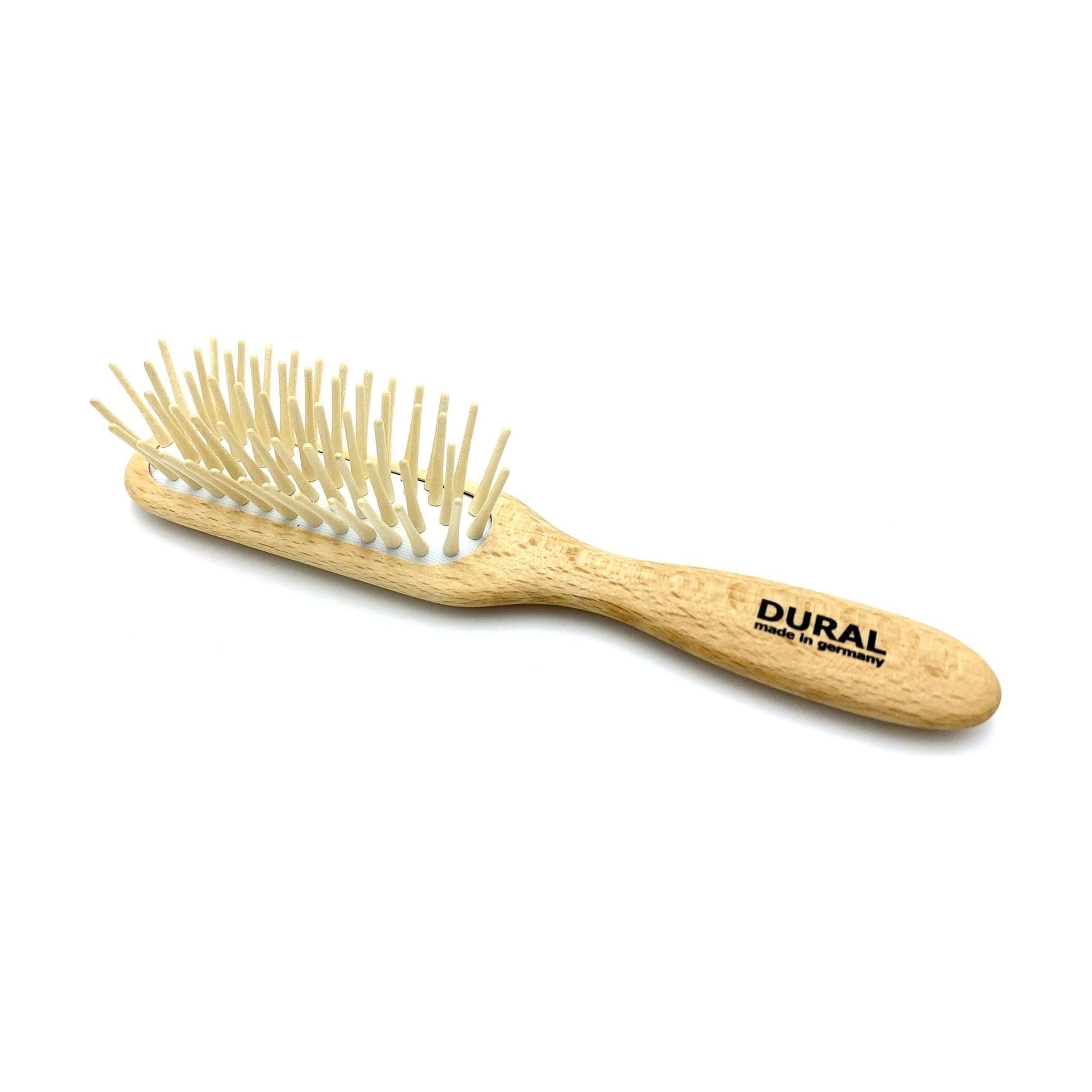 Dural Hair Brush For Styling & Care Rubber Cushion Long Wooden Pins Beech Wood