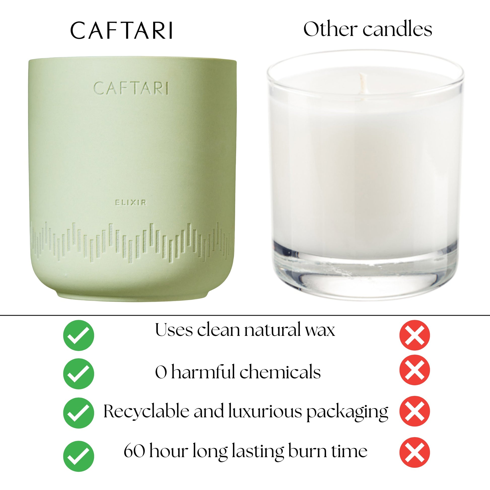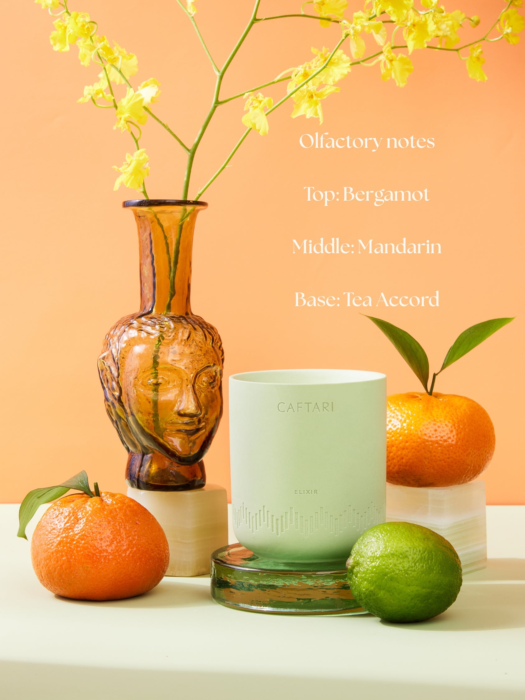 Reawaken your mind and body any time of day. Revitalize with a gentle boost of energy. Our proprietary fragrance blend featuring bergamot essential oil encourages the release of endorphins, aneurotransmitter in the brain known as a feel-good chemical. This neurotransmitter is associated with Gamma brainwaves, which are emitted whenwe’re in a heightened state of awareness. With its citrusy profile, Elixir is a purposeful aroma to light and encourage a sense of revival.