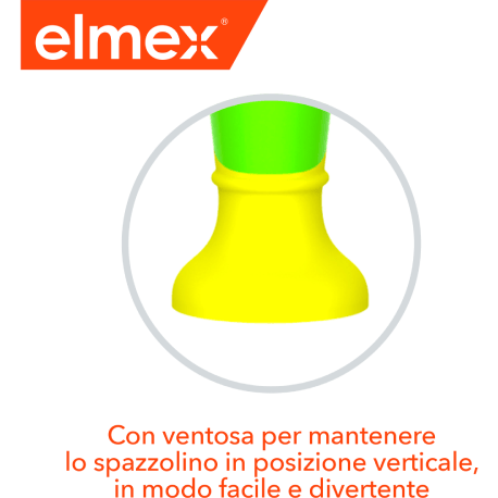 • The yellow colored bristles indicate the dose of toothpaste recommended by children's dentists