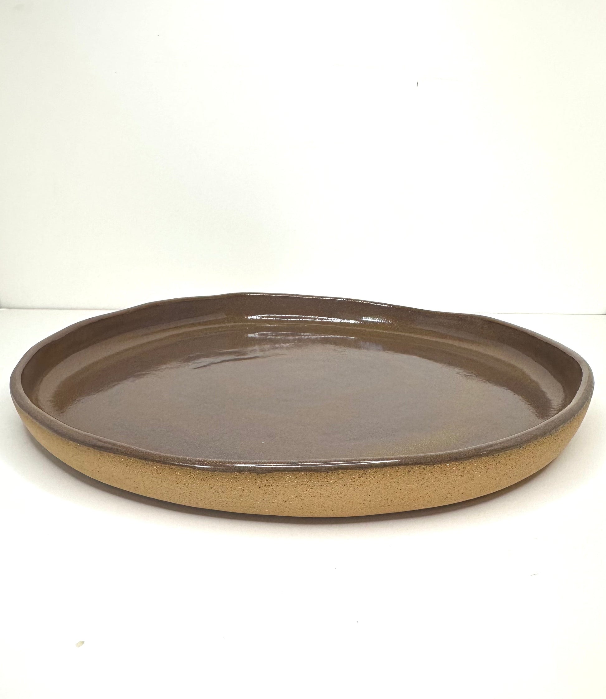 Handcrafted large plate, with a diameter of 11" and 1" tall. Due to the artisanal nature of these pieces, slight variations in height and size are to be expected, a charm of handmade craftsmanship. These versatile plate/bowl is perfect for various uses. Mix and match with the medium and small FRECKLES collection of plates and cups to create your unique combinations. CLAY: Light brown with black speckles. GLAZE: Glossy Mushroom color. Handcrafted from USA-sourced clay. Unique, mold-free, small-batch production. Glazed finish (not microwave-safe). We recommend handwashing to prevent surface decay and scratches. Please note that slight variations in size may occur due to the clay's natural behavior during the drying and firing process.