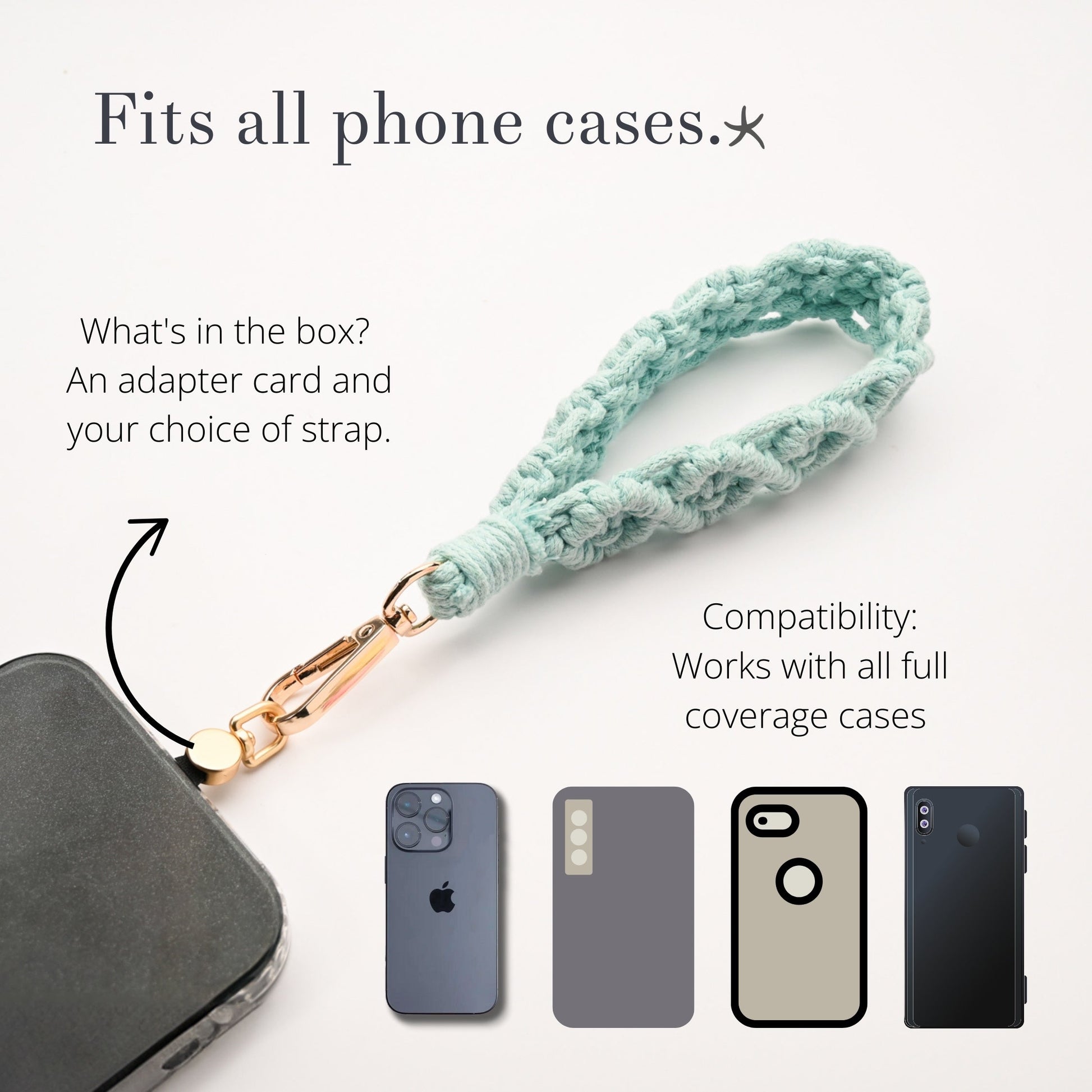 Reimagine how you carry your phone! Elevate your everyday with the Fresh Mint Macramé Wrist Strap, a dreamy pop of mint color designed for beauty and function. Handwoven this versatile strap easily clips onto your phone, keys, or favorite bag. The included adapter card ensures compatibility with all full-coverage phone cases, making it a thoughtful gift for anyone who loves a hands-free, stylish solution. Available at an exclusive price in our beautifully paired ready-to-gift set! Fresh Mint Gift Set What's in the box? Each set comes with an adapter card and strap. Materials: Handmade wrist strap Hypoallergenic; lead and cadmium free with nickel content less than100ppm. Size: 8 inches