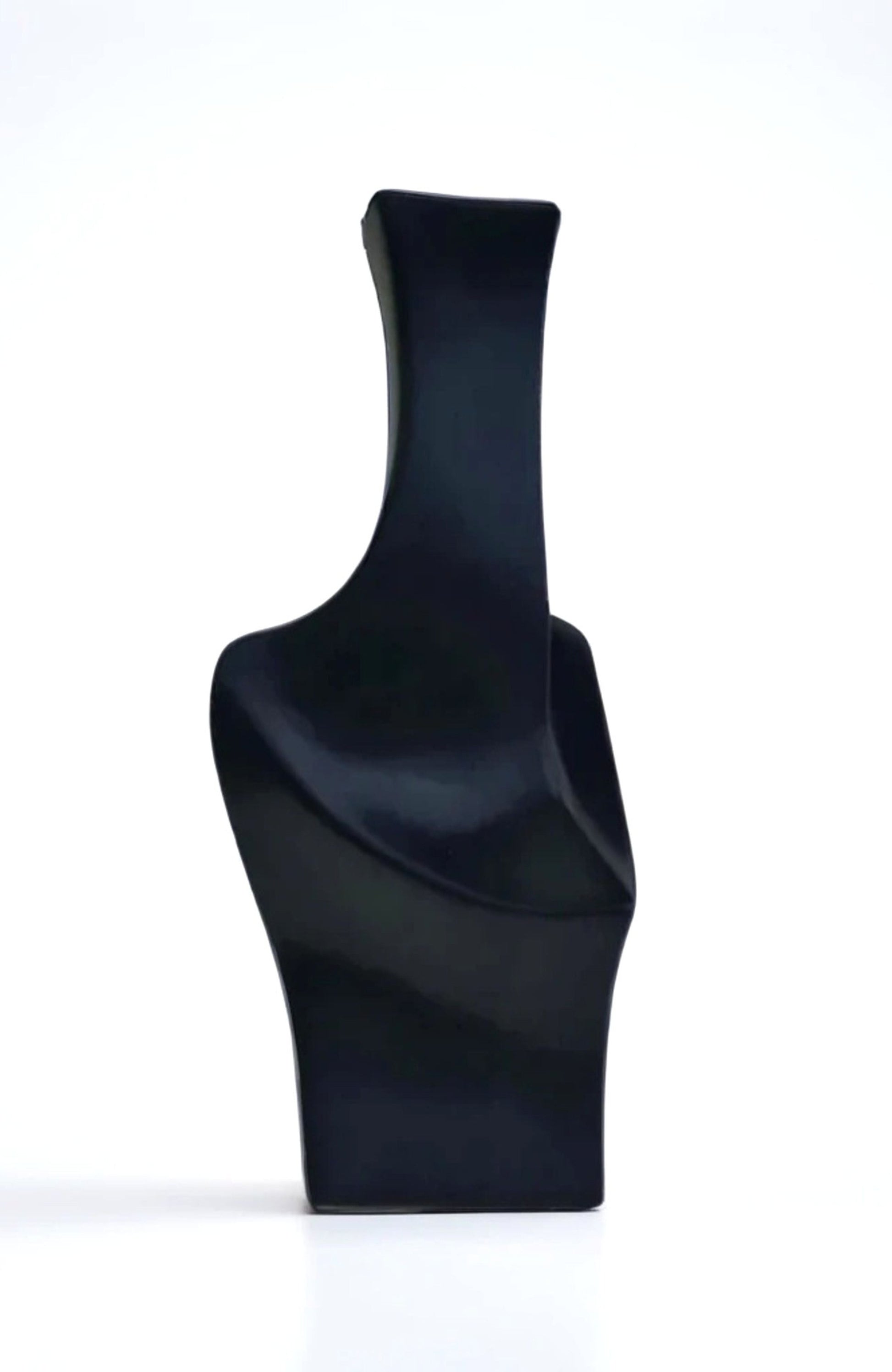 Geo-Vibe Black Ceramic Vase – A bold, sculptural piece that elevates contemporary décor, featuring a striking geometric silhouette with fluid lines that play with light and shadow. The deep matte black finish adds sophistication, making it a perfect statement for modern spaces. Style it solo or pair it with other pieces from the Geo-Vibe set for a striking, cohesive display Product Details Dimensions: 7” L x 6.5” W x 13” H Material: Ceramic Finish: Matte black Watertight: No Care: Clean gently with soft, dry cloth; use damp if needed (water only) Origin: Ethically and sustainably handcrafted in Portugal