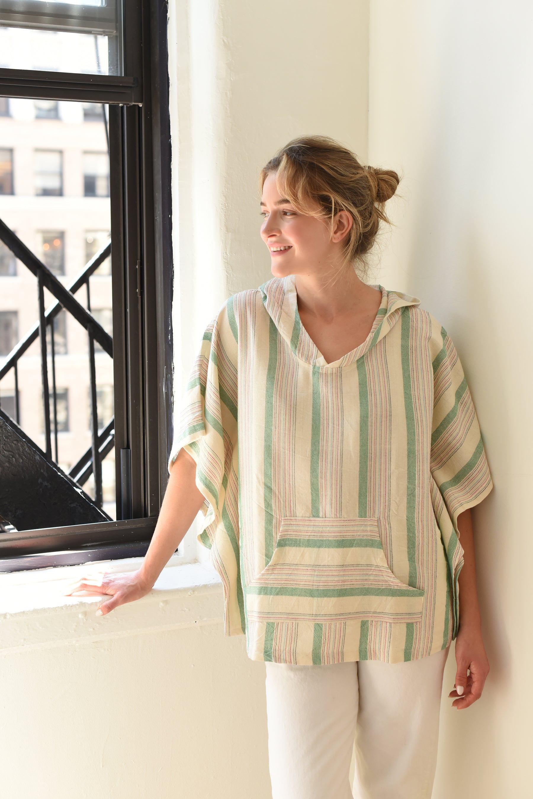 Crafted on the coast of Turkey, our Green Ivory Poncho is hand loomed using traditional techniques and woven with 100% premium Turkish cotton. Similar to a Turkish towel, it is highly absorbent, lightweight, eco-friendly, and quick to dry. We love it for its beautifully boho vibe and chic aesthetic. Experience how your poncho becomes softer and better with each and every wash!