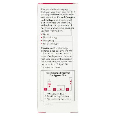Discover the Japanese secret for ageless skin with Hada Labo Tokyo Anti-Aging Hydrator from Japan’s No. 1 selling skin care line and increase the appearance of your skin's firmness and elasticity. This serum-like formula provides deep hydration with Super Hyaluronic Acid that works in synergy with a Retinol Complex and Collagen to help fight the signs of aging, reduce fine lines and wrinkles, and boost vital skin hydration. It also contains Beta-carotene to help reduce skin irritation and increase cell turnover and Collaplus G to help promote skin renewal and boost collagen production. Suitable for all skin types, this fragrance-free anti-aging facial serum also contains no parabens, dyes, or mineral oil. For optimal results, apply a few drops to palms and pat onto face and neck until thoroughly absorbed. Use anytime your skin needs a moisture boost. Elevate your skincare routine with Hada Labo Anti-Aging Hydrator and experience the beauty of Japanese skincare.