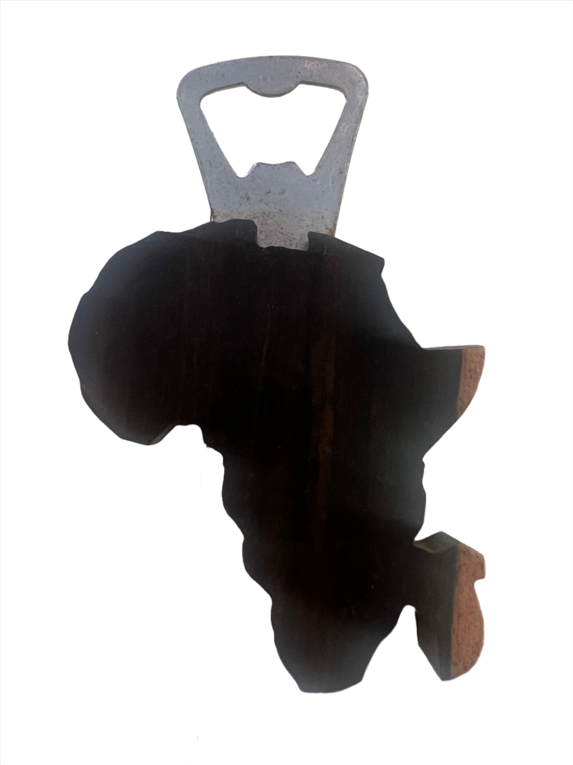 Discover unique handicraft and support community development with our handcarved African bottle opener. Made from sese wood, this sustainably sourced opener features Africa-themed shapes and is a creative gift for any occasion. With every purchase, you're helping artists at the Aburi Craft Village Gallery thrive.