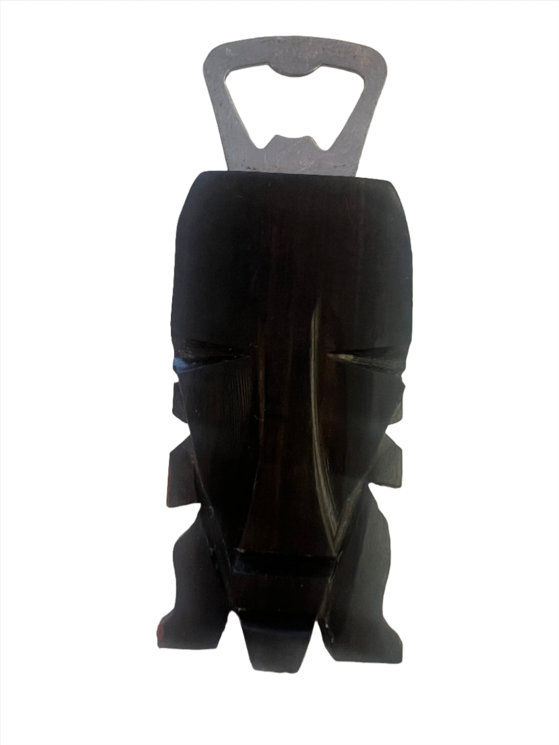 Open your favorite beverage with a handcarved African bottle opener. Handcarved sustainably harvested sese wood with bottle opener in Africa themed shapes. Each one is handcraved so expect variations. Made in Ghana. Supports work with the Aburi Craft Village Gallery. 4-5"