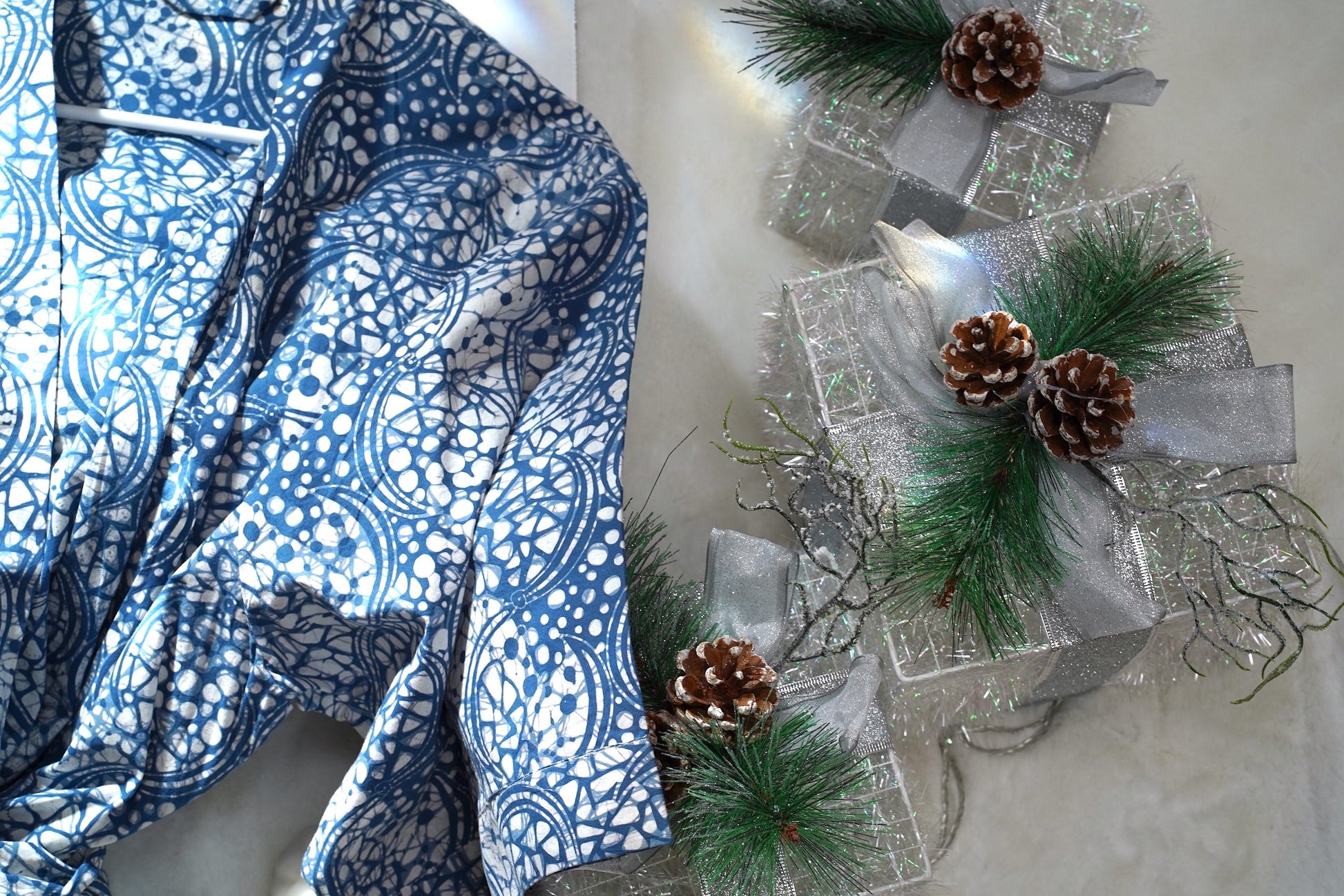 Handmade Batik Robe/ Kimono, Blue Stone, Hand Dyed, 100% Cotton