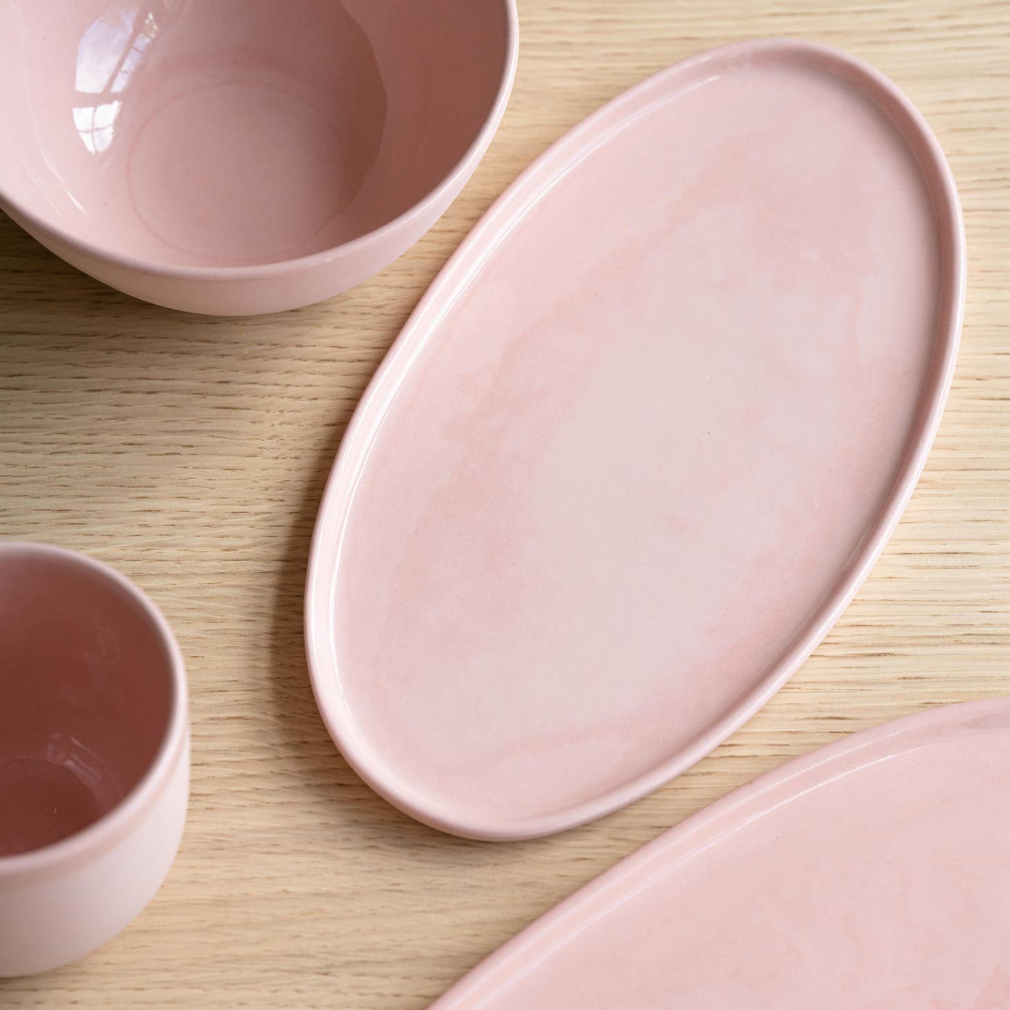 Handmade porcelain serving platter with organic round edges works perfectly for everyday and special occasions alike. Beautiful colored clay compliments your food and the oval shape of this porcelain platter makes it easier to set the table.