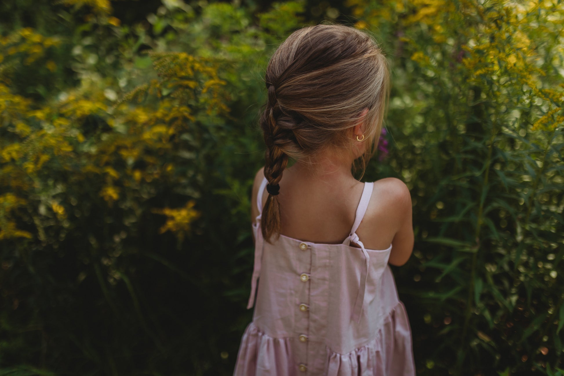 Say hello to our magical Hikari Pintuck Dress, perfect for your child's adventures and special events. Made from soft, breathable cotton, this dress boasts a fully lined lovely flowy skirt with gathering, adjustable straps, and a delicate pin-tucked bodice for both style and comfort.