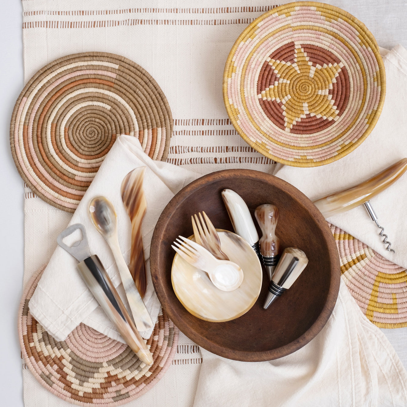 This unique, hand-crafted horn product is sustainably made from the horns of the Ankole-Watusi, or Ankole Longhorn, a breed of cattle native to western Uganda and parts of East Africa. These distinctive horns are a recycled byproduct of the food industry and are purchased directly from the cattle keepers, providing revenue for local cattle keeping communities. The horn is then hand carved and polished according to Maadili designs by a small scale artisan community.
