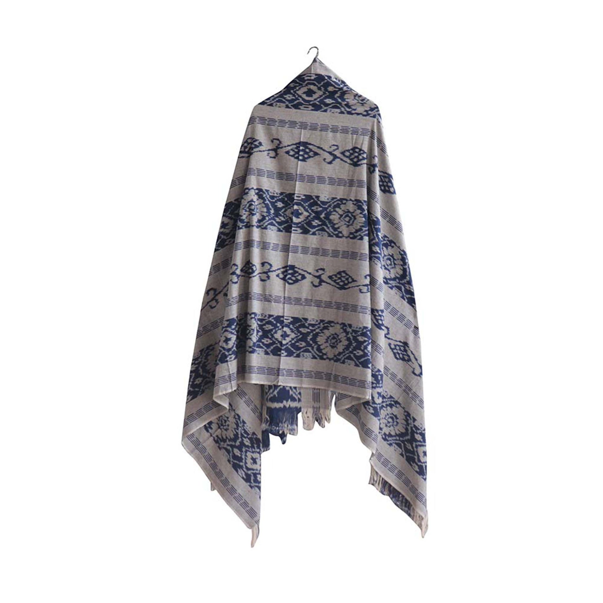 Ikat Blanket Throw, Gray & Dark Blue Handwoven in Indonesia