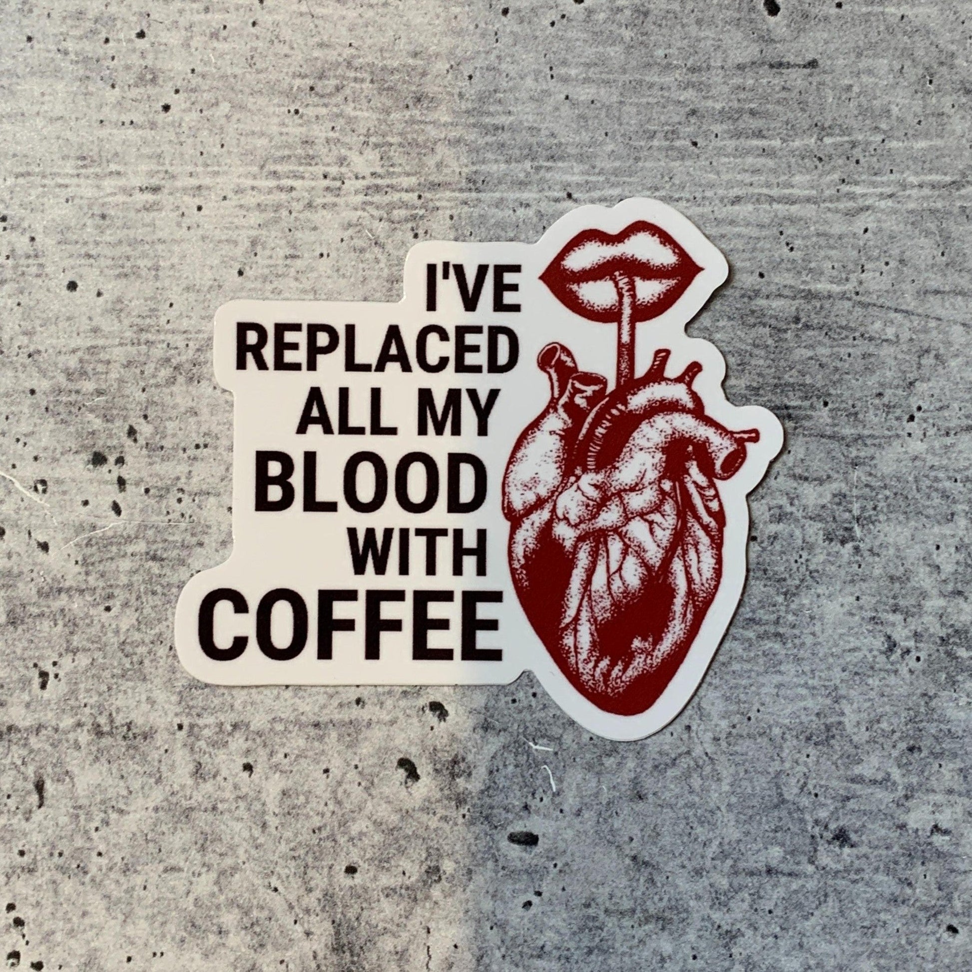 I've Replaced All My Blood With Coffee Vinyl Sticker | Coffee Lover