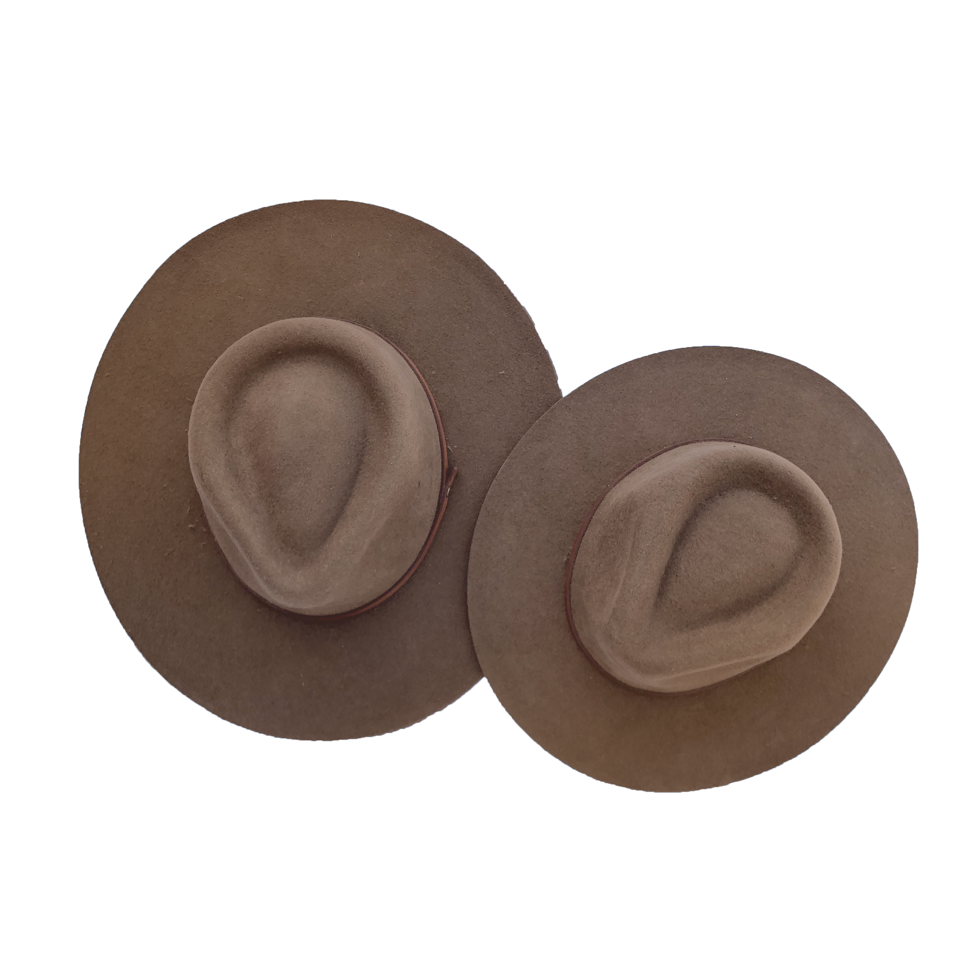 The mini version of our best-selling handcrafted Vida Rancher Hat! So cute for matching with mom or dad. There's a size adjustable inner band to fit a range of sizes and to grow with your babe. Buy a matching set for you and your mini and save 15% on the kid's hat! Discount automatically applied at cart. Style Notes Made to fit heads in range of 52cm and below Size Adjustable Inner Band Leather Hat Band Crown measures 3.5" Brim measures 3" Sizing Guide Made to fit heads in range of 52cm and below. There's a size adjustable inner band to fit a range of sizes and to grow with your babe.