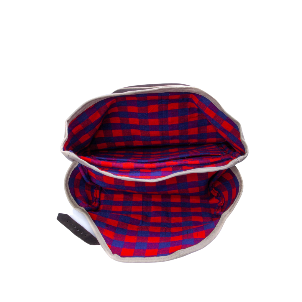 Designed after the likeness of our Original Shell Bag, this bag is hand-stitched with high-quality leather and canvas and lined with the iconic Maasai Shuka. This spacious, yet light-weight bag will soon become essential to your every day and travel or camping go to!