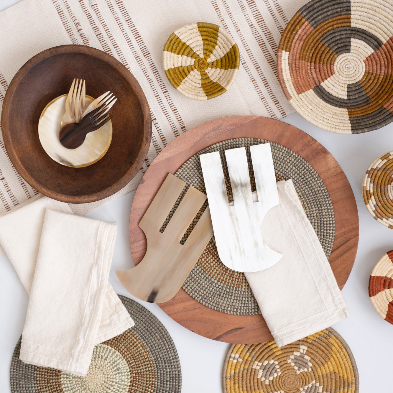 Bring an earthy, cultural vibe to your handcrafted table with a pair of the Kindred Salad Hands. Assorted color tones.
