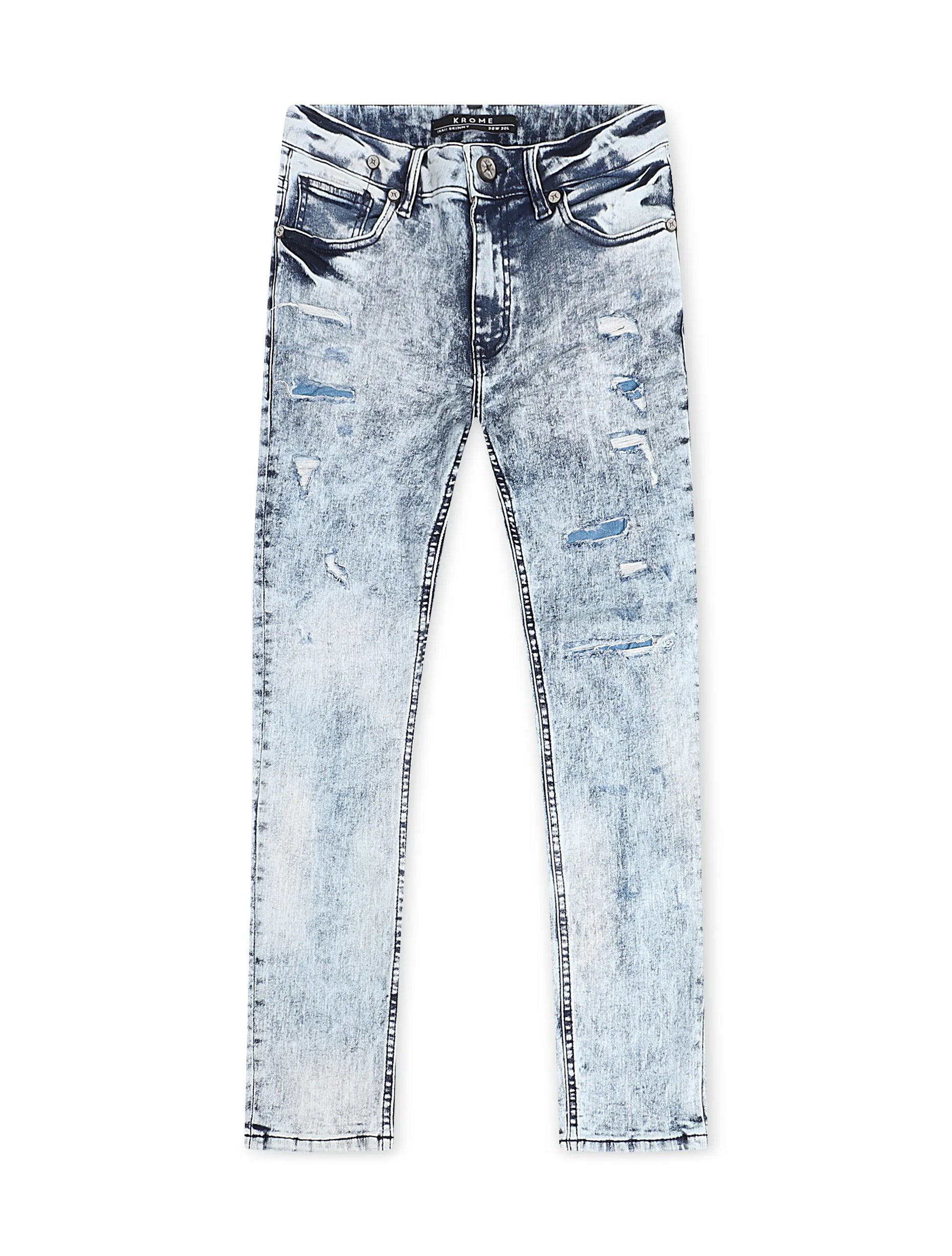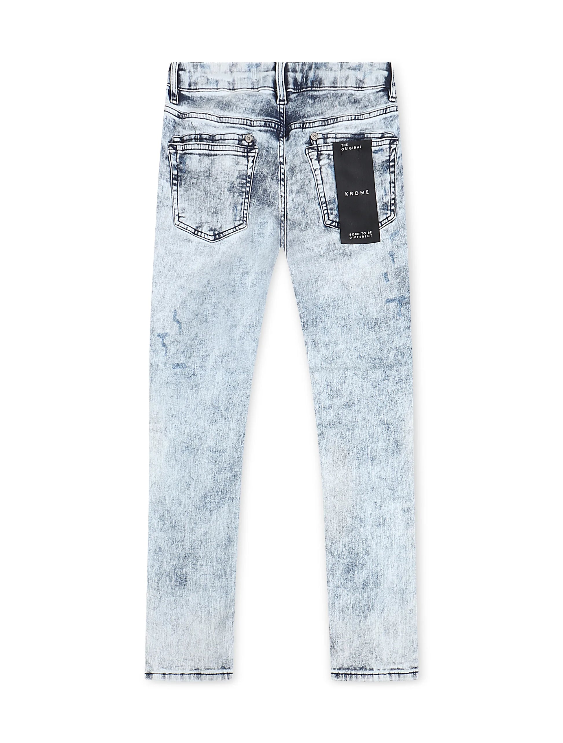 These Krome Men's Slim Fit Denim Pants in Marble feature a modern slim fit design and are made with high-quality denim for a polished look. The light bleach wash adds a touch of edginess to these versatile pants.
