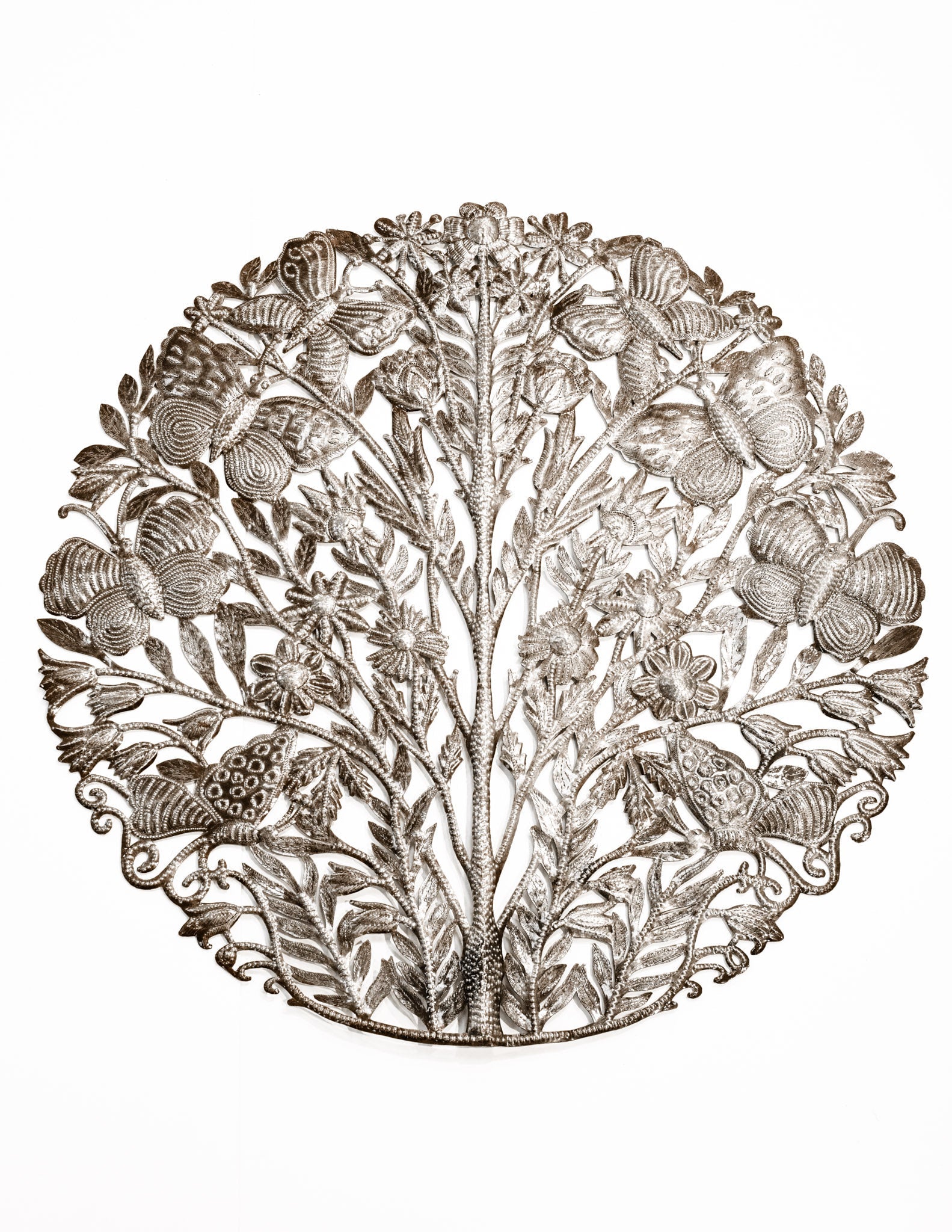 A 2022/2023 new arrival to the Beyond Borders Haitian metal art line, Large Butterflies in the Garden is a garden-themed metal art piece made for both indoor and outdoor decorative use. The perfect decorative metal art piece for your home's patio or garden area.