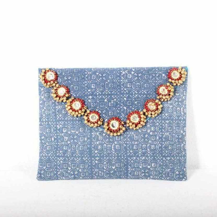 Oasis Batik Envelope Fabric Clutch With Bells - Thailand