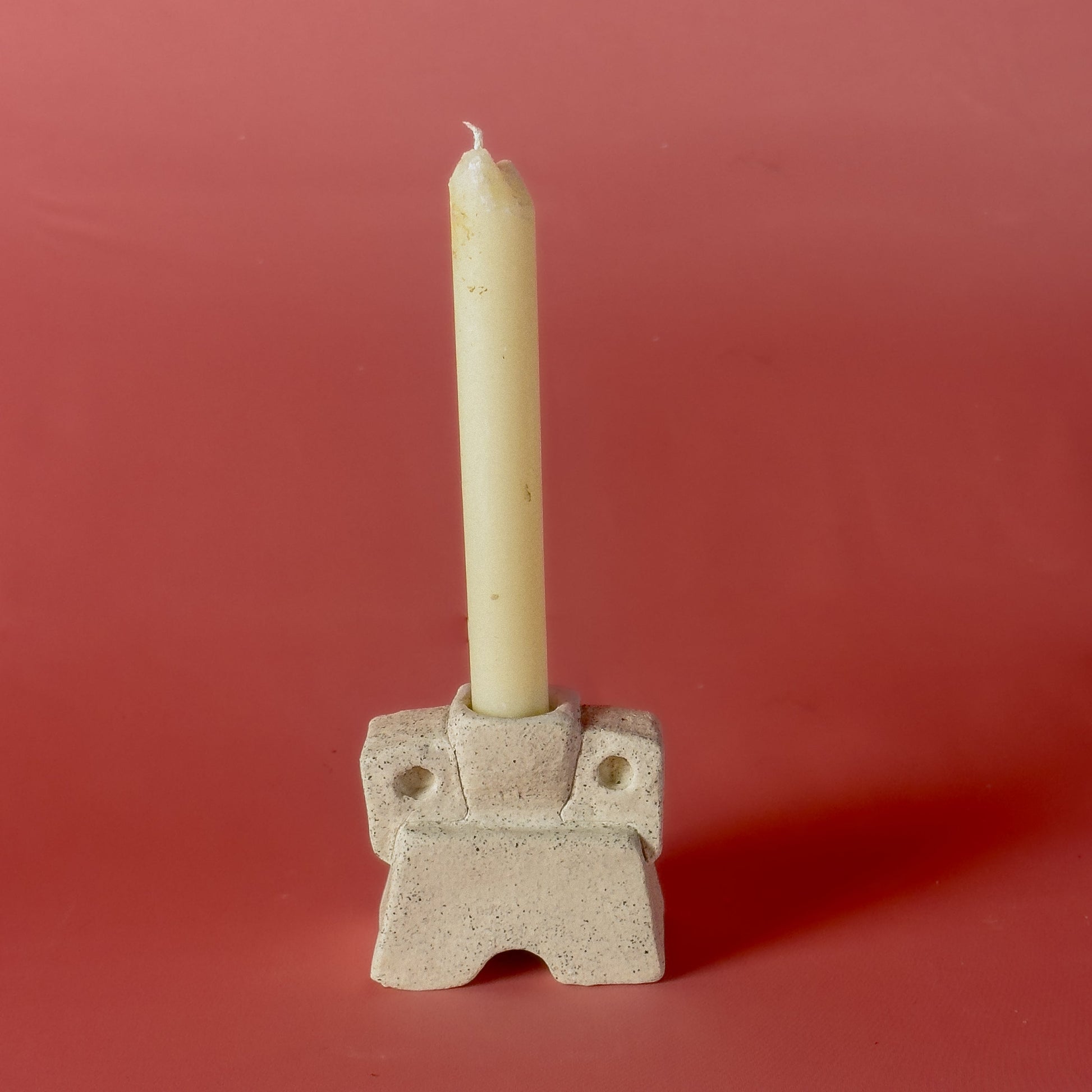 Elevate your space with our stunning candleholder, perfect for setting the mood for hosting, or having a solo dinner. Create a row by buying a set. Mix and match candle colors to create a beautiful display,. Hand-crafted using a slip casting technique adds a touch of art to your home with this sculptural candle holder. The huicho vase is artistic, she's bold and strong, she’s sculptural Material: Speckled Stoneware Product Dimensions: Approx 3" tall x 3" wide, 2" length Note: Each piece is handcrafted. We expect and embrace subtle variations.