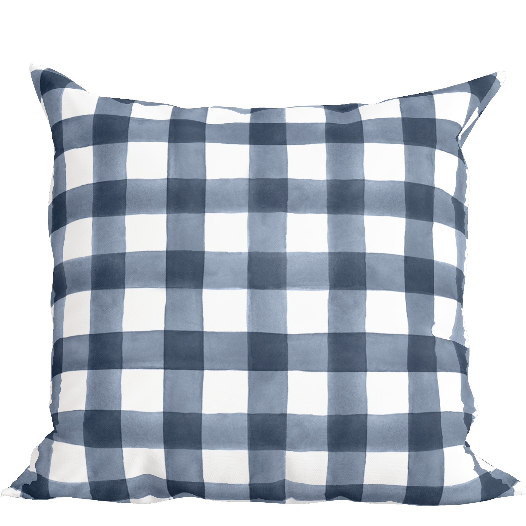 Our navy blue check pillow features a timeless, classic pattern that effortlessly complements a variety of colors and room styles. Also available with a traditional monogram for a personal touch. Explore our shop for customizable options.