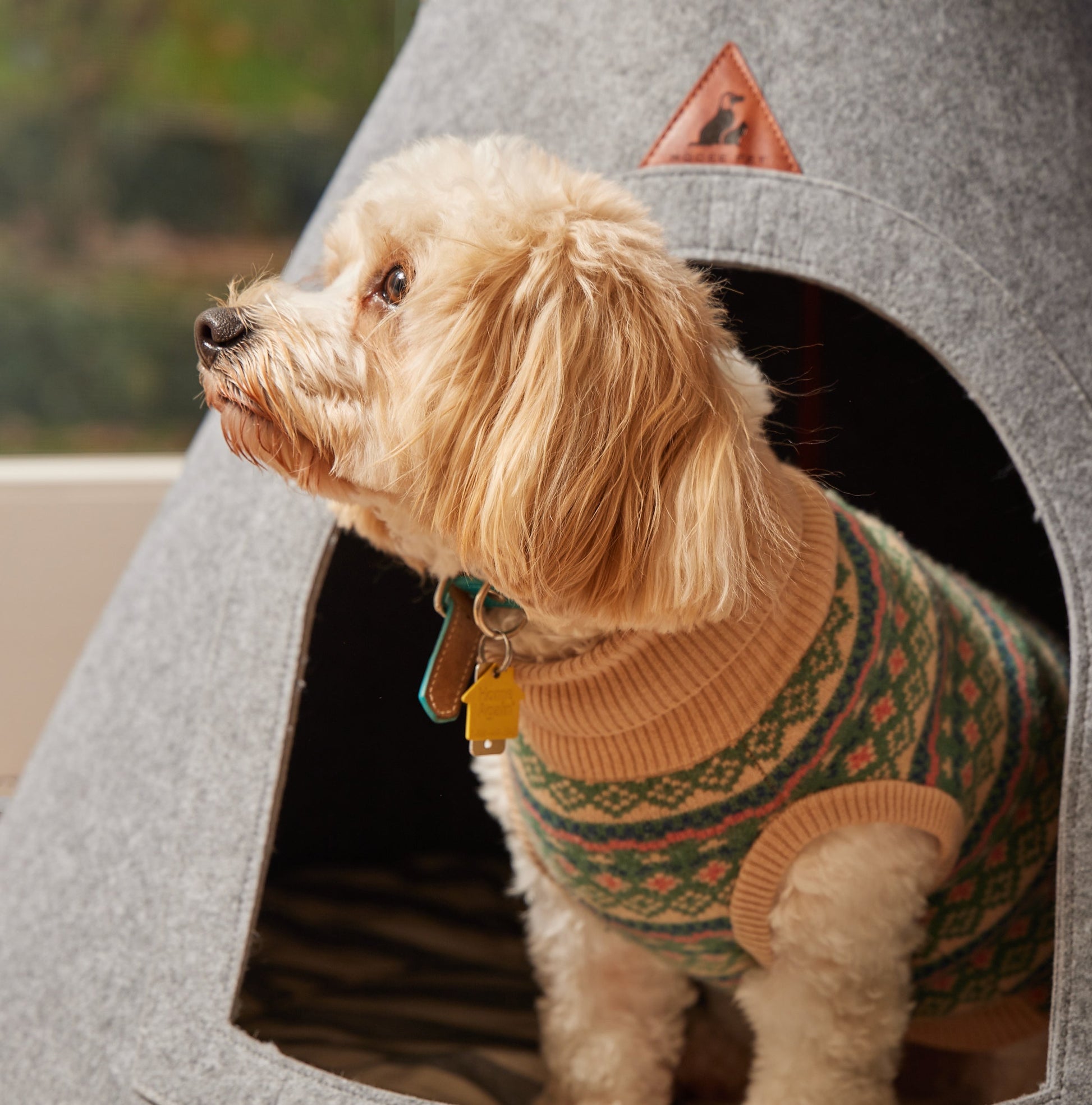 An iconic Nooee Pet classic - this lightweight, modern pet home is a wonderful and cozy hideaway. Shaped in a cone with an arch opening, it includes an extra-comfy cushion that is removable. The zipper construction enables easy assembly and access throughout for cleaning including the interior. This home can be rolled up and placed into the provided convenient bag allowing you to carry a familiar spot for your pet when traveling. Its simple and sophisticated design blends easily with your home decor.