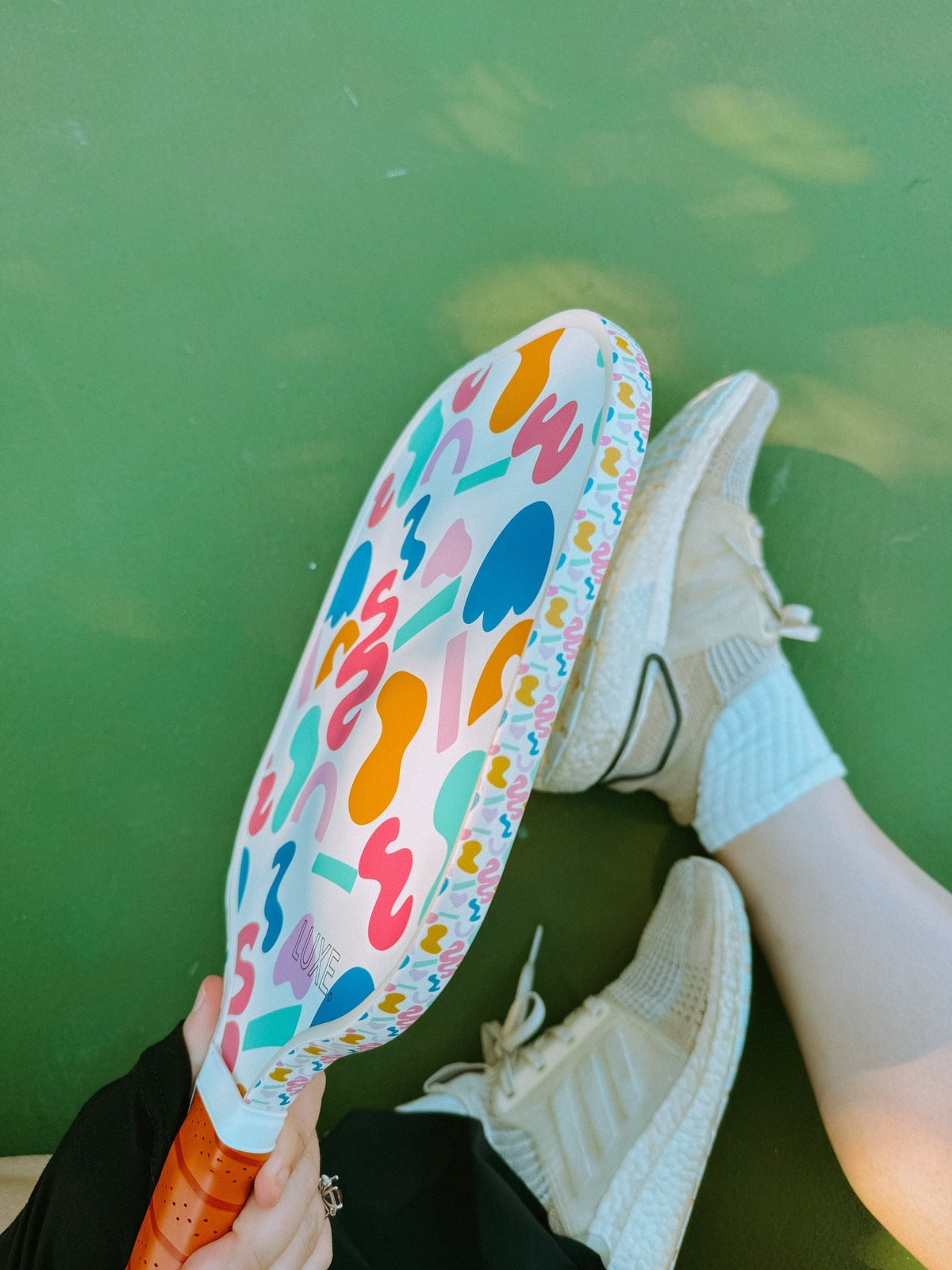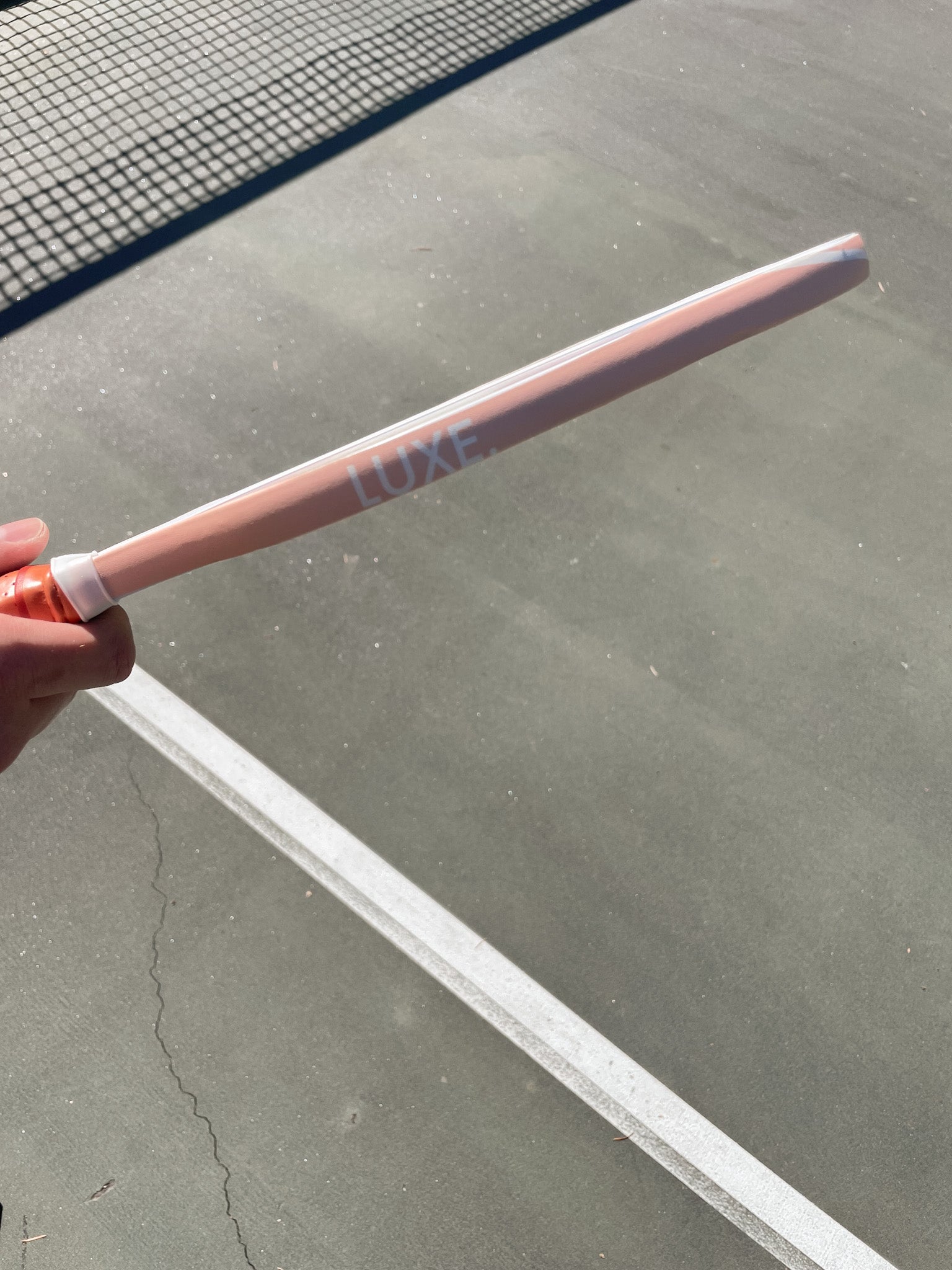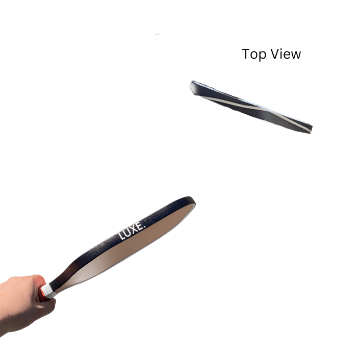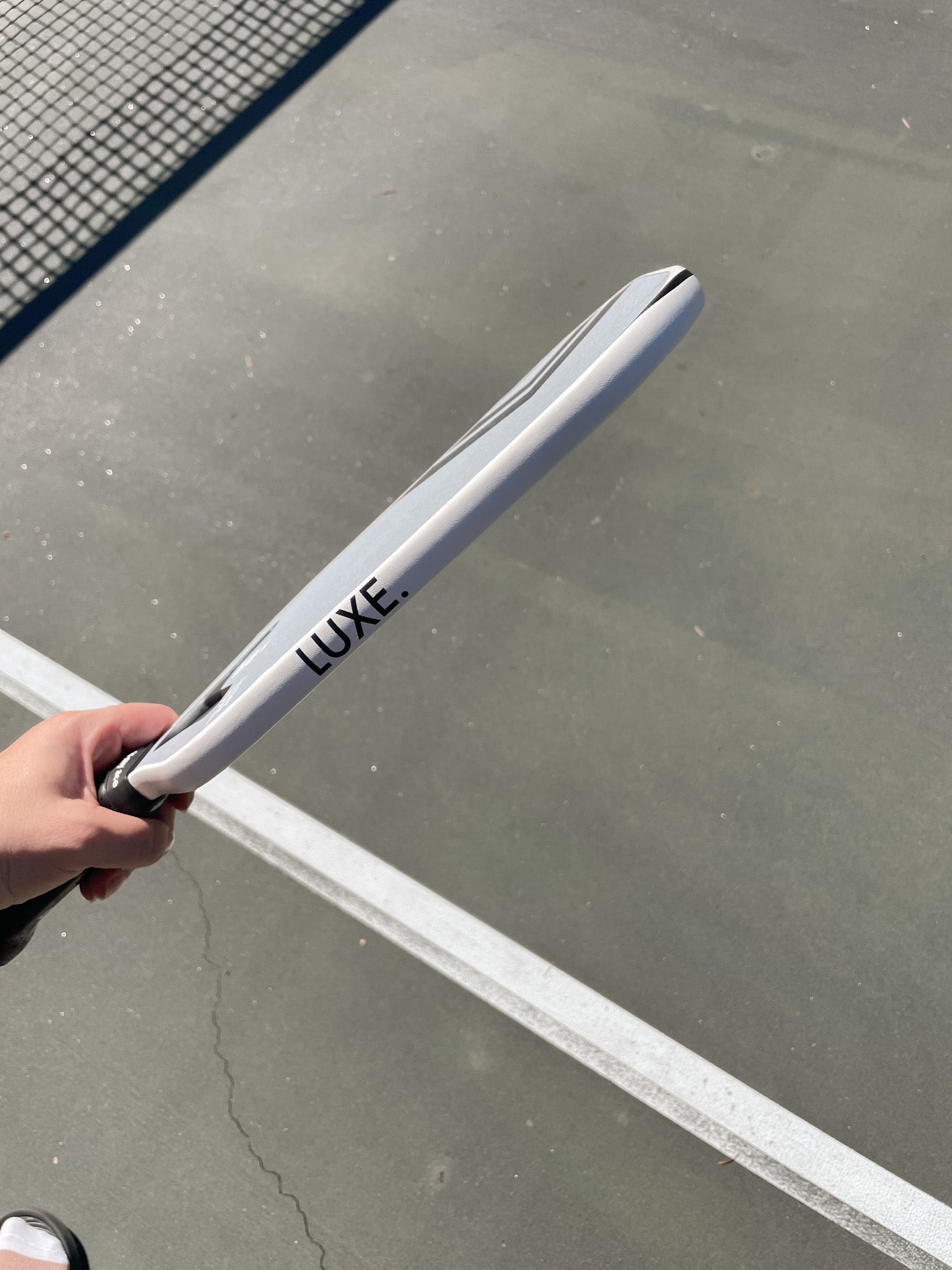 1.7 cm (17 mm) wide. See photos of how it fits on different-sized paddles, will work on 11mm-16mm thick paddles.