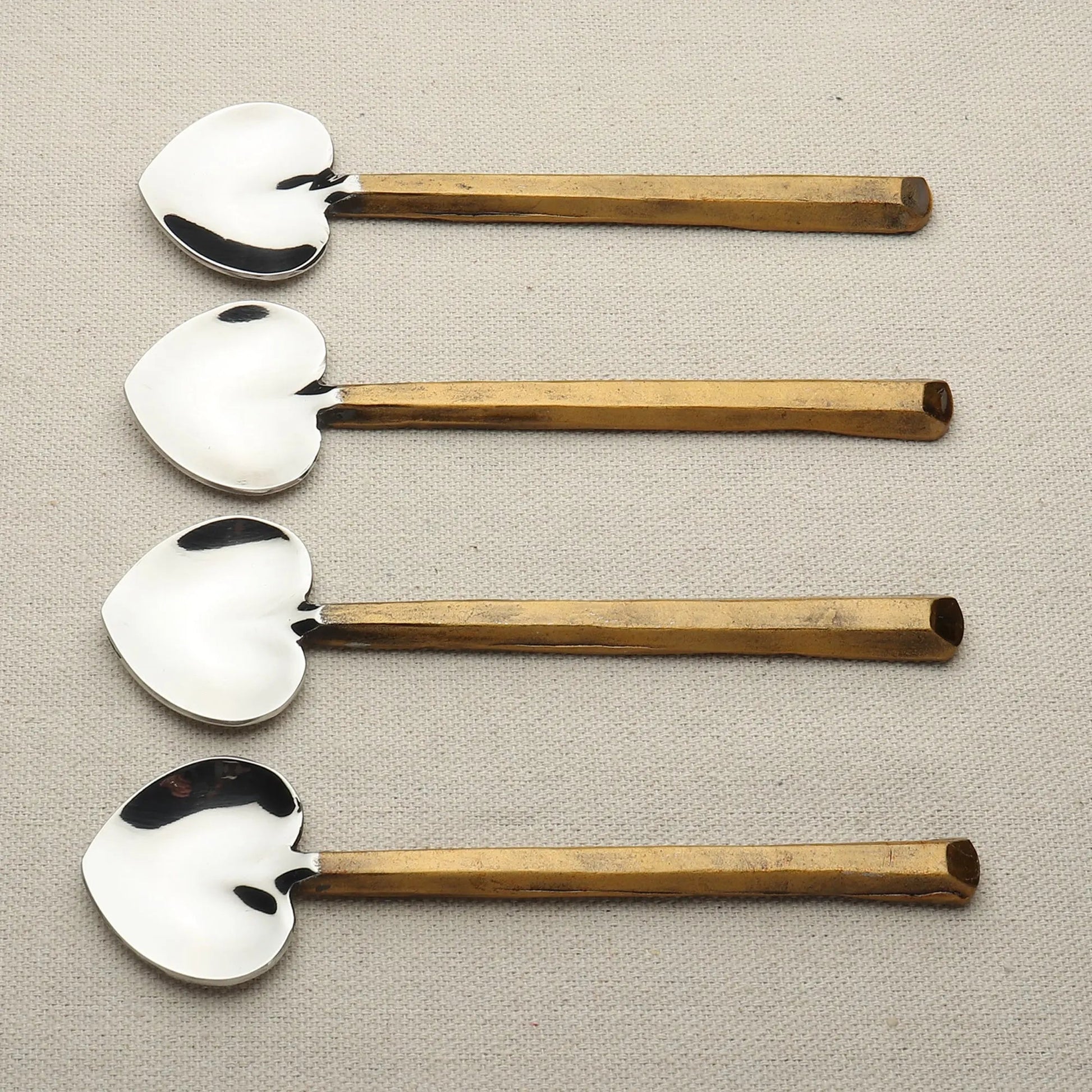 Dress up your coffee bar or dessert table with our Plateau Heart Spoon Set. An eye-pleasing set of four, the handcrafted design features polished heart spoons with square beveled edge handles in a warm vintage gold finish.