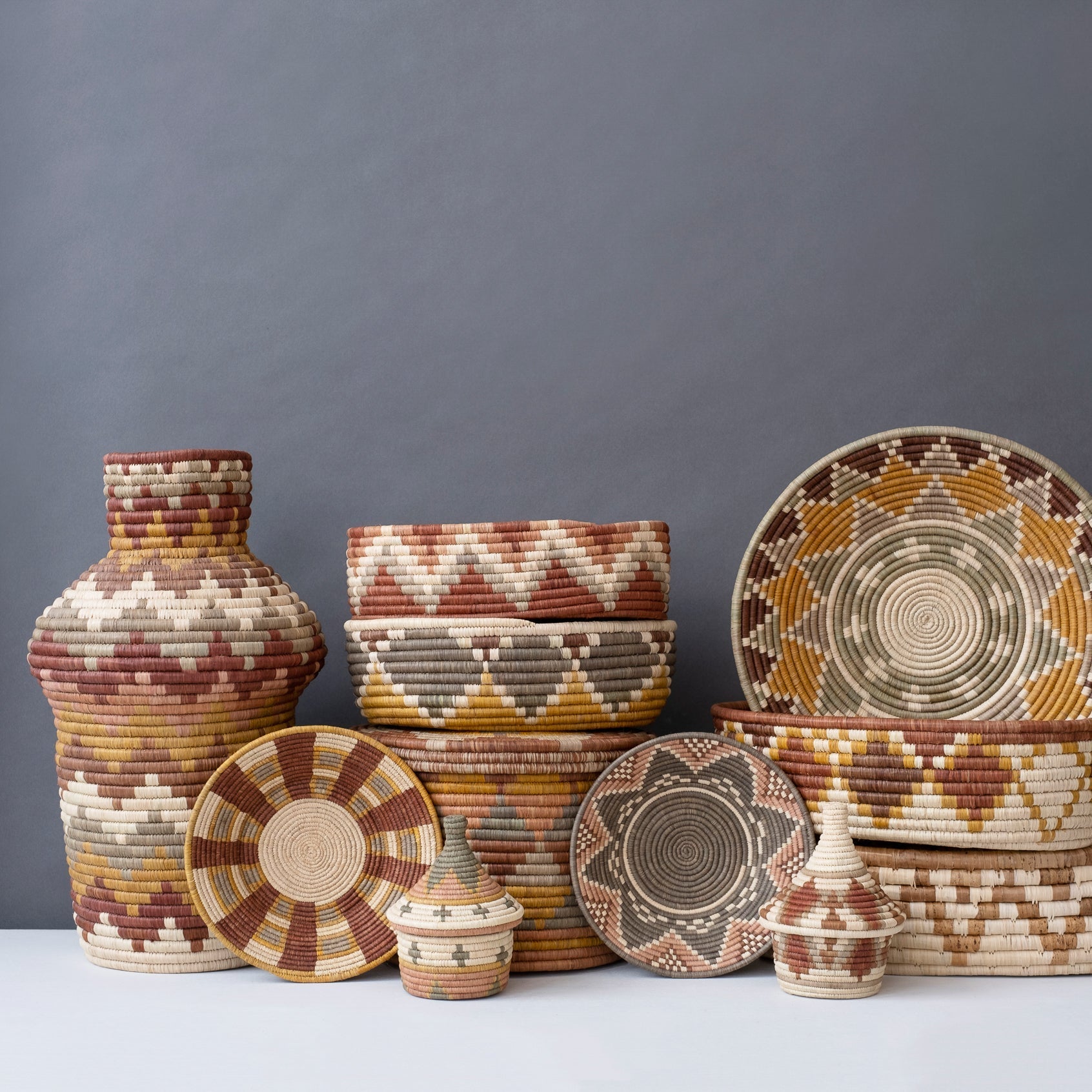 Make a wall statement with a stunning collection of baskets on display or elevate your tablescape with a unique centerpiece. A medium sized, thoughtfully crafted basket in a rich combination of seasonal colors. Part of the Elevate Collection, the 2025 annual small batch collection of baskets.