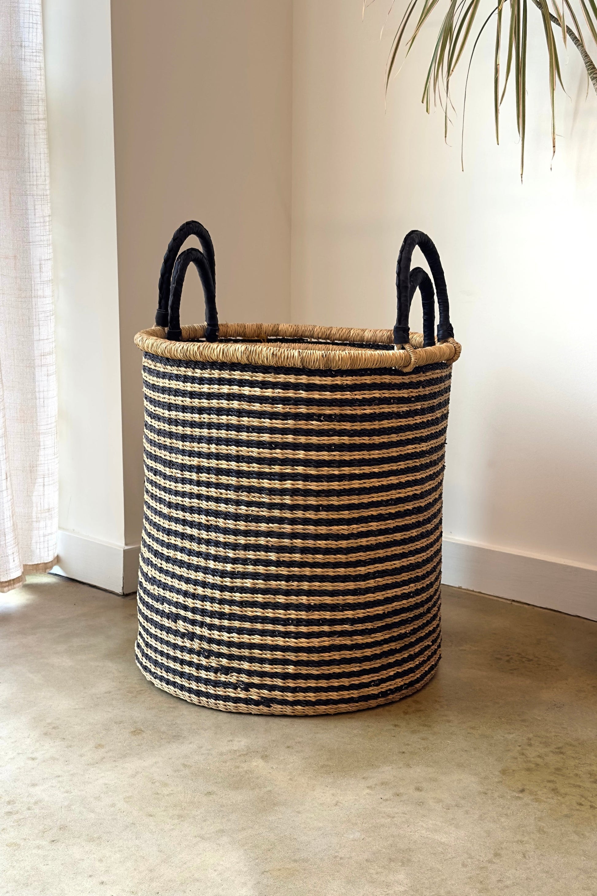 S/2 Handwoven Hamper - Natural with Black Stripes