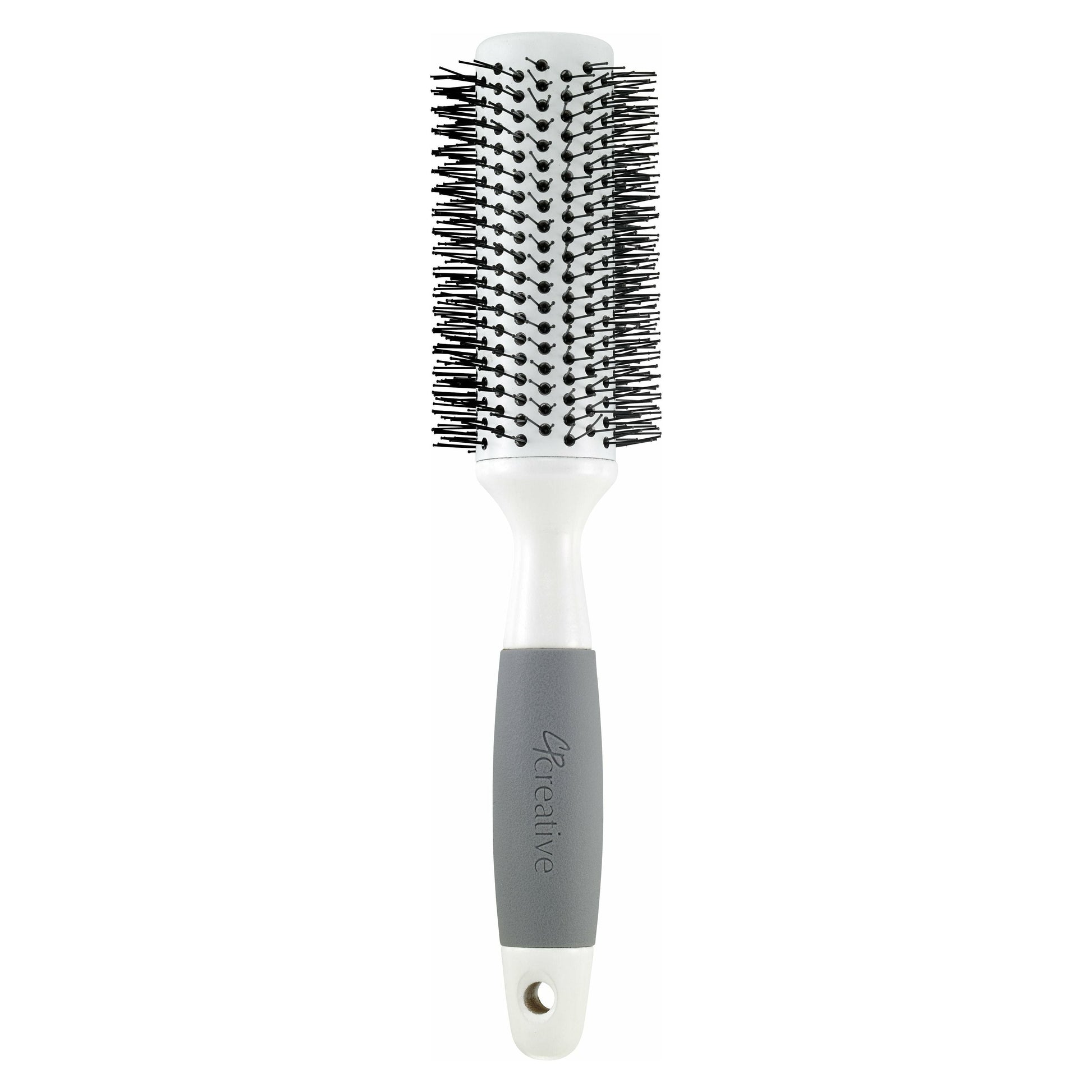 Enhance the volumizing effect of your blowout with this Solid Round Barrel Nylon Bristle Hair Brush, perfect for fine hair.
