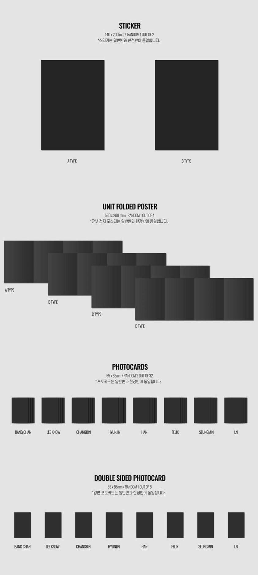 - Double sided photocard : Random 1 out of 8 (Same images for LIMITED EDITION)