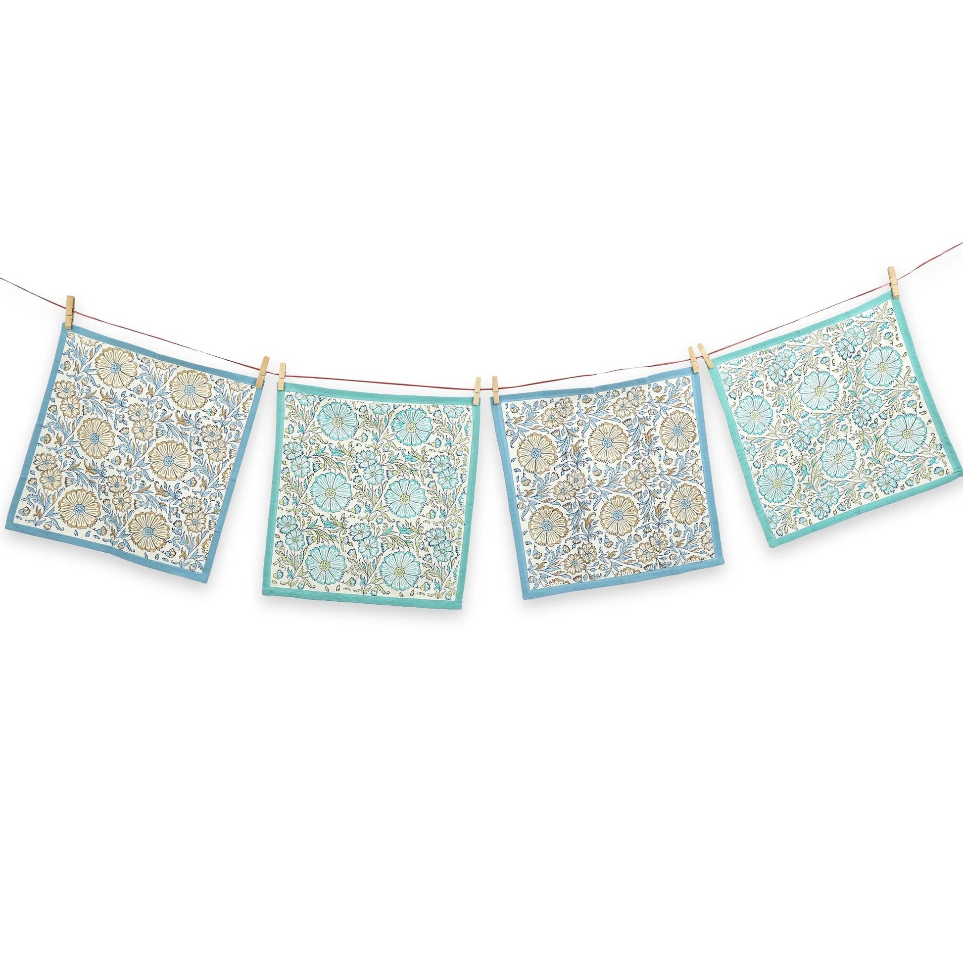 STREAMLINE 18"x18" Hand Block Printed Napkins - Set of 4. Cotton - Fair Trade - Artisan Made
