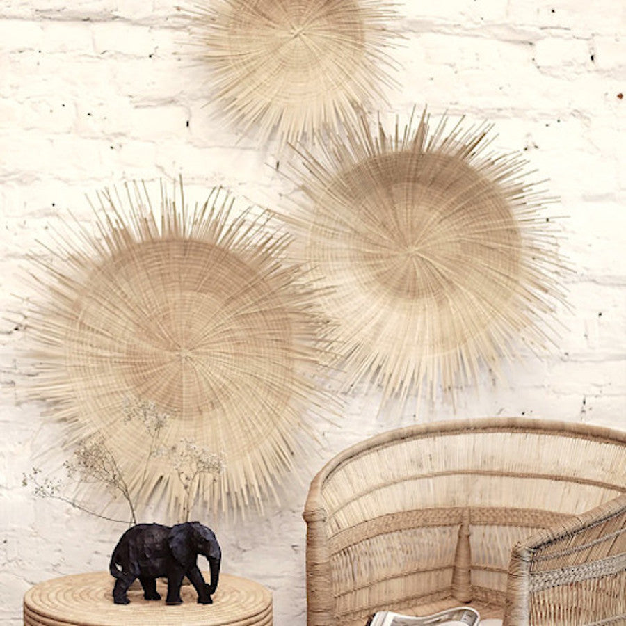 Meticulously handwoven by the first ever female group of basket weavers in Malawi, these stunning Natural Sunburst Plates make a gorgeous statement on any wall. Woven out of all natural palm leaves with an edge that raises ever so slightly from the wall, they come in various sizes - and they look lovely grouped together!