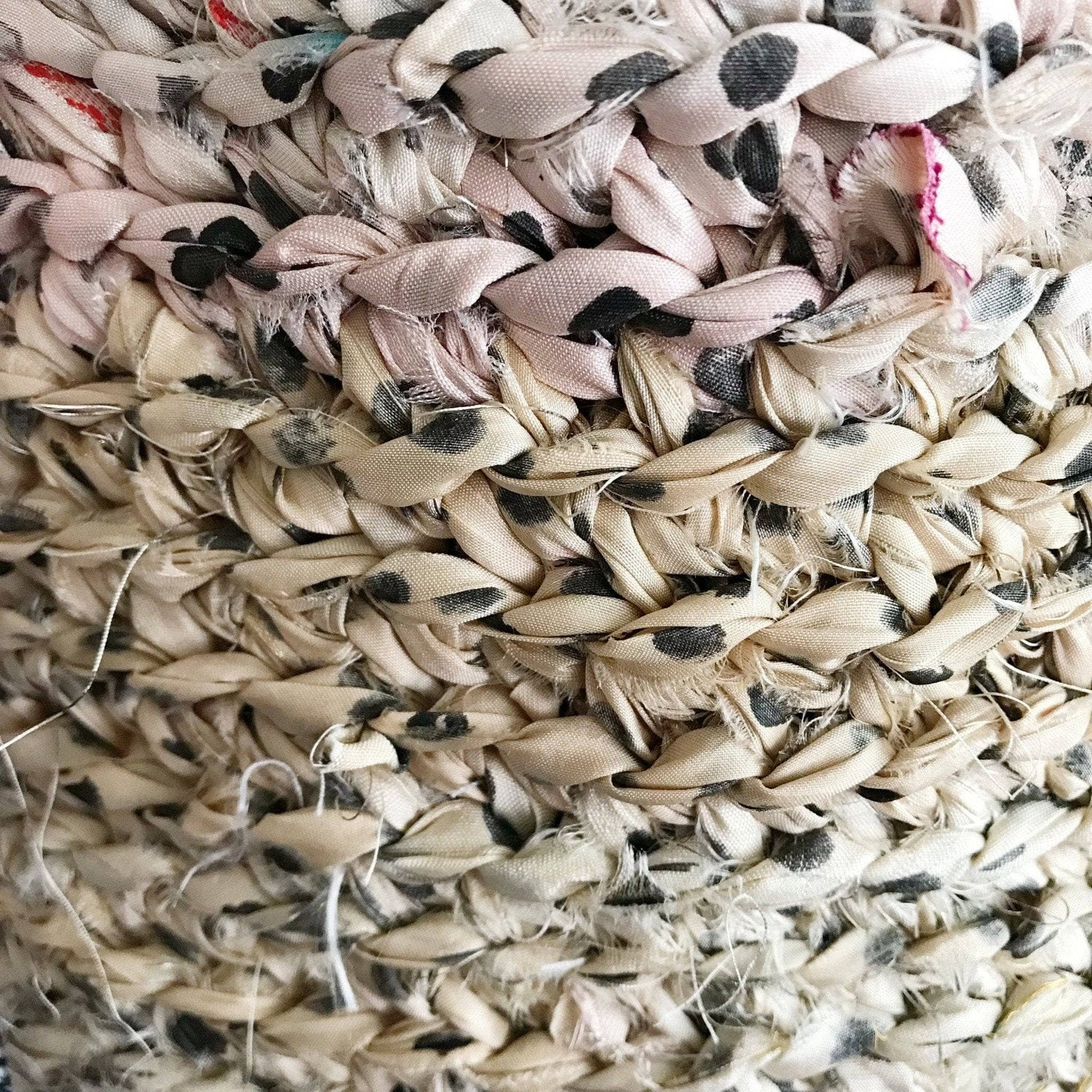 These super simple and sturdy basket is perfect for holding just about anything! Create a stylish storage option for your home - crocheted from our Block Printed Handmade Sari Silk Ribbon Yarn, this basket can be made in a variety of colors and is a great eco-friendly option.