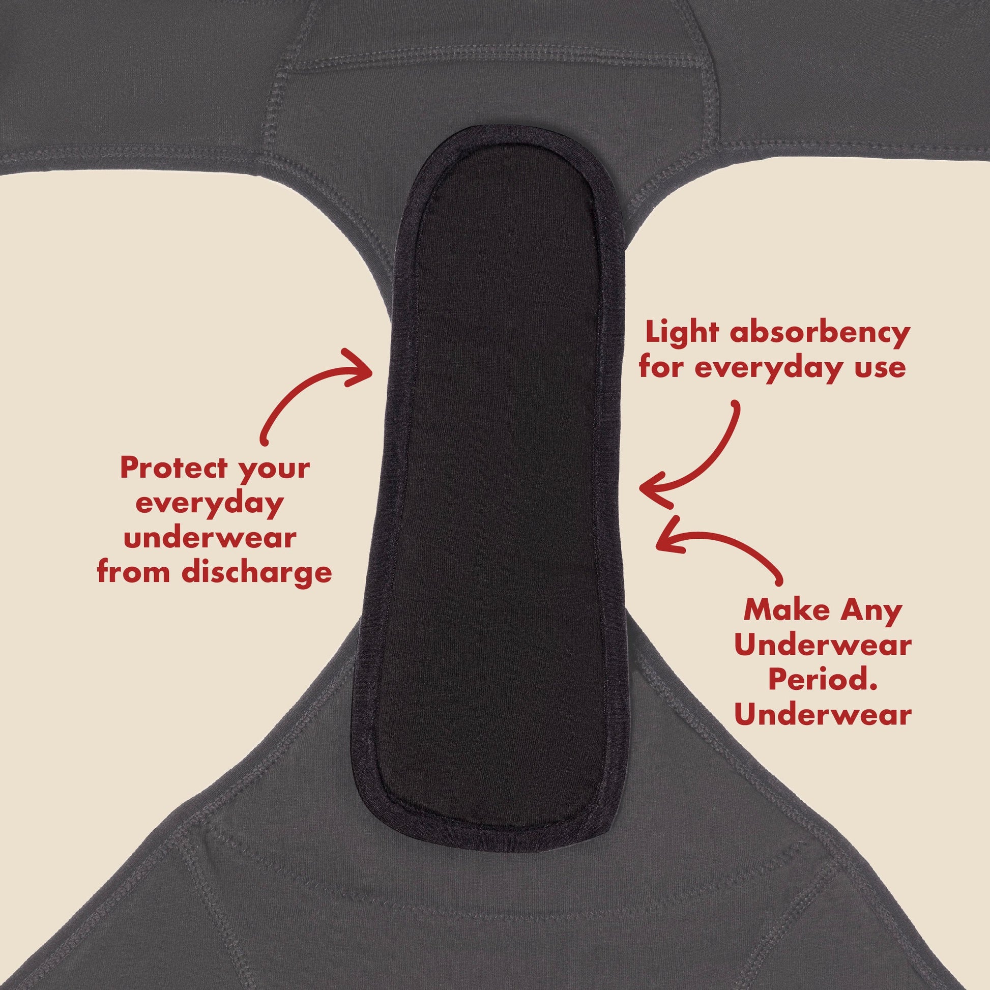 I am the newest biggest deal around here. That’s right. I’m the Pantyliner. The Period Company had so many requests from their community for a reusable, amazing Panty Liner that they invented me - da dah! I can be worn every single day, and help absorb the last days of a period, discharge and small bladder leaks. You wear me just like a disposable panty liner, except that you can wash me and reuse me again and again and again. I’m waste-free and hassle-free. I don’t want to brag, but the number one period product used in the world is a disposable pantyliner. Imagine all the trash that is? With me, you don’t have any waste and I last for years. See? Amazing.