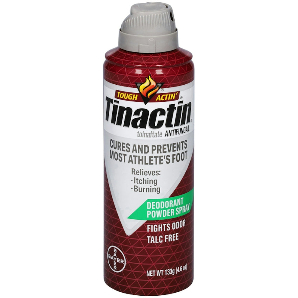 If you suffer from painful burning feet, cracked skin, and foot odor caused by athlete's foot infections, rejoice! Fast, effective, and affordable, Tinactin® Athlete's Foot Deodorant Powder Spray offers a solution to the itchy skin on your feet and between your toes and to the smelly foot odor caused by tinea pedis. If you suffer from chronic athlete's foot or itchy skin on your body caused by ringworm (tinea corporis), Tinactin® is for you. It goes on easily, penetrating hard-to-reach skin between the toes, and can leave your body dry and odor-free. This effective first aid spray treatment for athlete's foot contains 1% tolnaftate, which is proven clinically effective for the treatment of most athlete's foot. If hard work, sweaty, smelly feet, or aggressive fitness training is causing natural fungus to spread on your body, choose the tougher-than-fungus antifungal power of Tinactin® for relief and foot odor prevention.