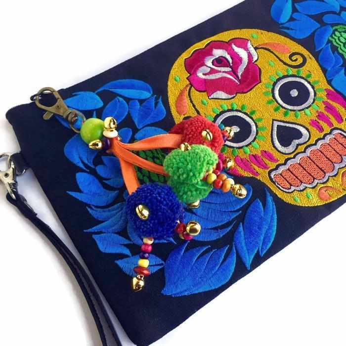 Handmade by women of the Hmong hill tribes in Northern Thailand, this colorful triple pom pom keychain is a small piece of joy you can carry anywhere.
