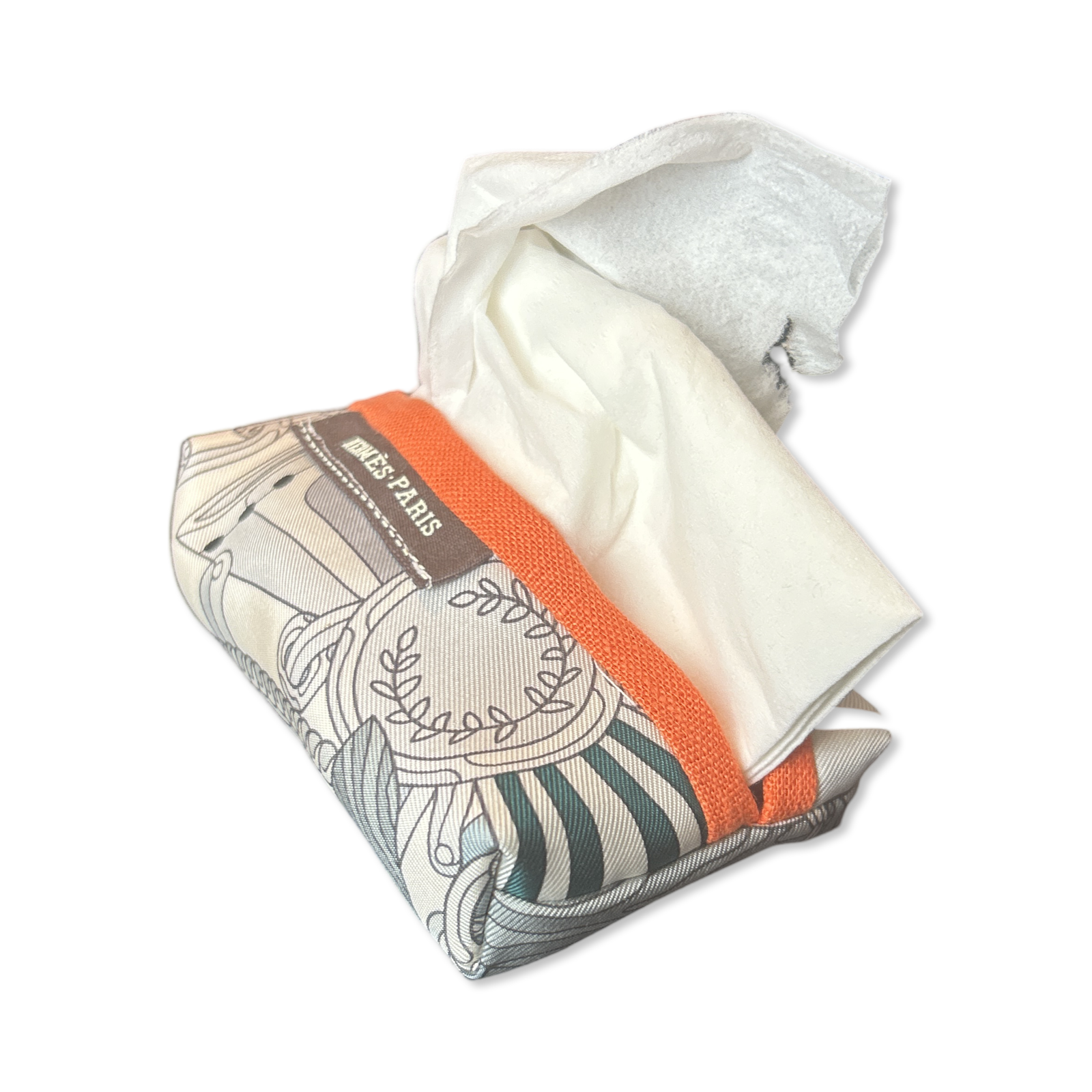 Reimagined from the world’s finest collection of vintage Hermes scarves, our travel tissue pouch is a stylish fashion accessory for your on-the-go lifestyle. Now you’ll always have a tissue when you need one.