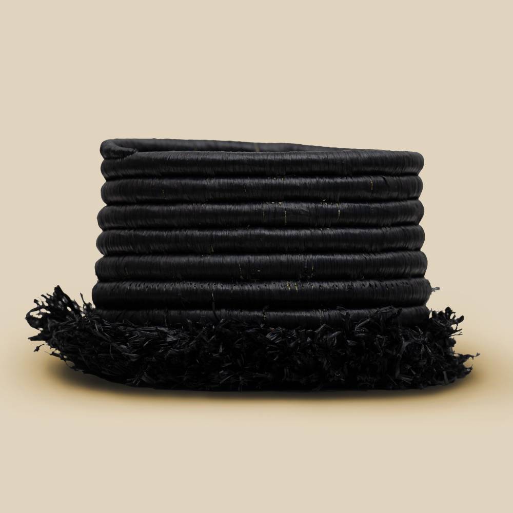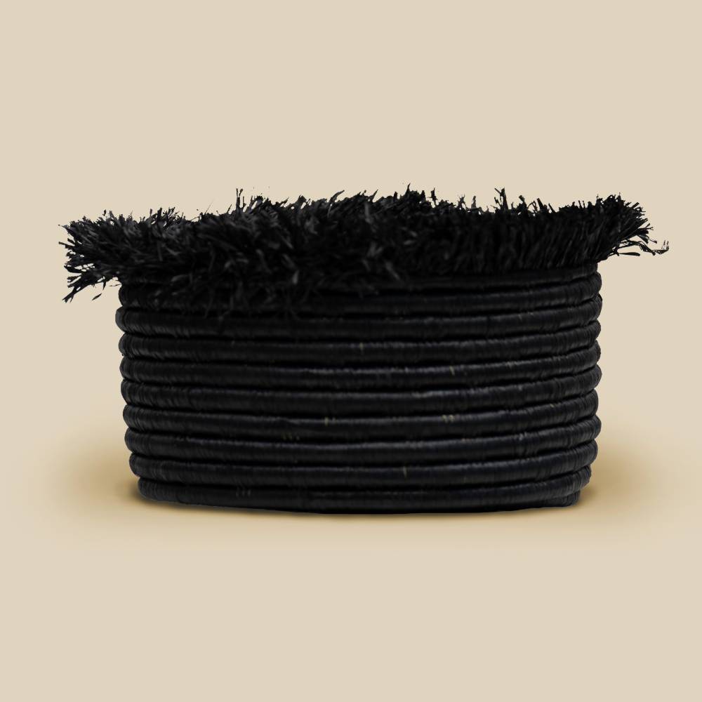 The Up & Down Vessels are a playful set of 2 trinket baskets perfect to store small items, or add fun accents to any decor. Featuring Raffia fringe detail on the rim and base of this duo.