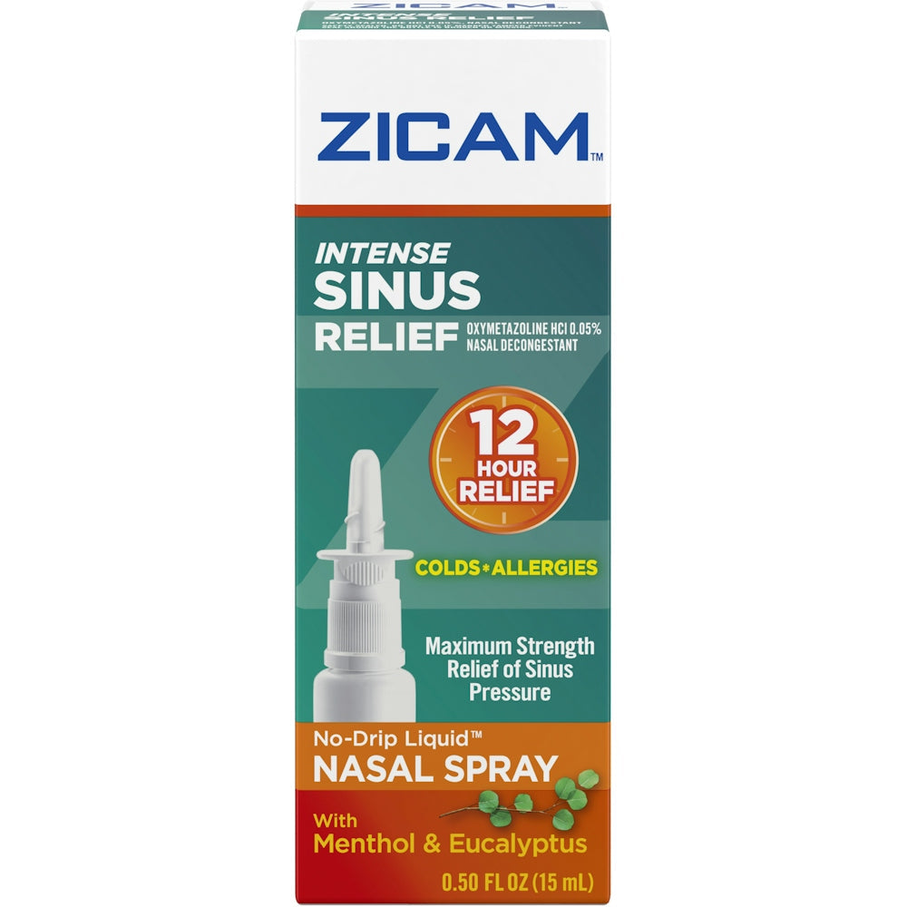 Zicam Nasal Spray, Intense Sinus Relief, No Drip Liquid, Cooling Menthol & Eucalyptus 0.5 Fl Oz