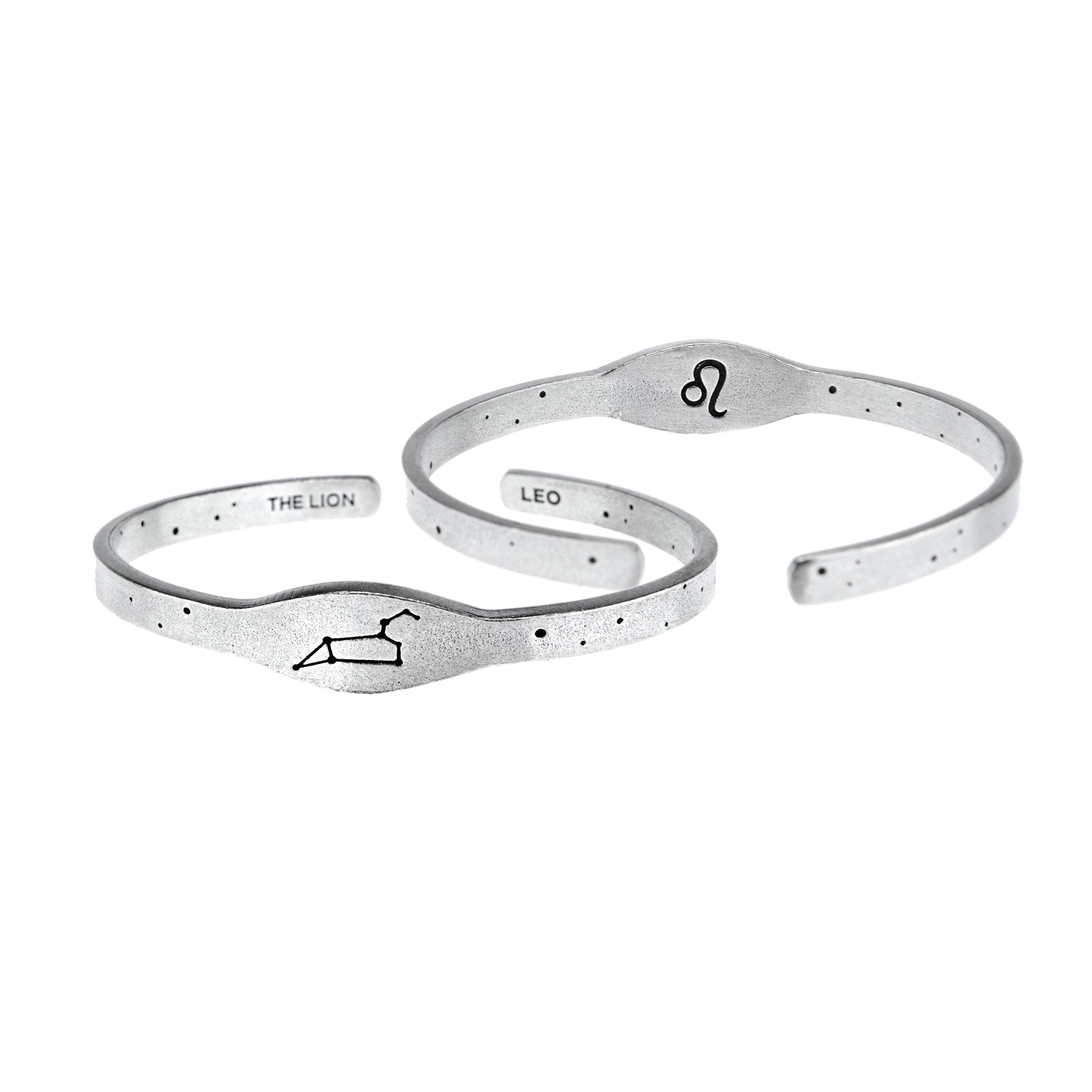A Zodiac Cuff Bracelet is the perfect way to show off your unique personality. The Leo sign is on the inside while the Leo constellation is on the outside. The lion is also inscribed on the inside.