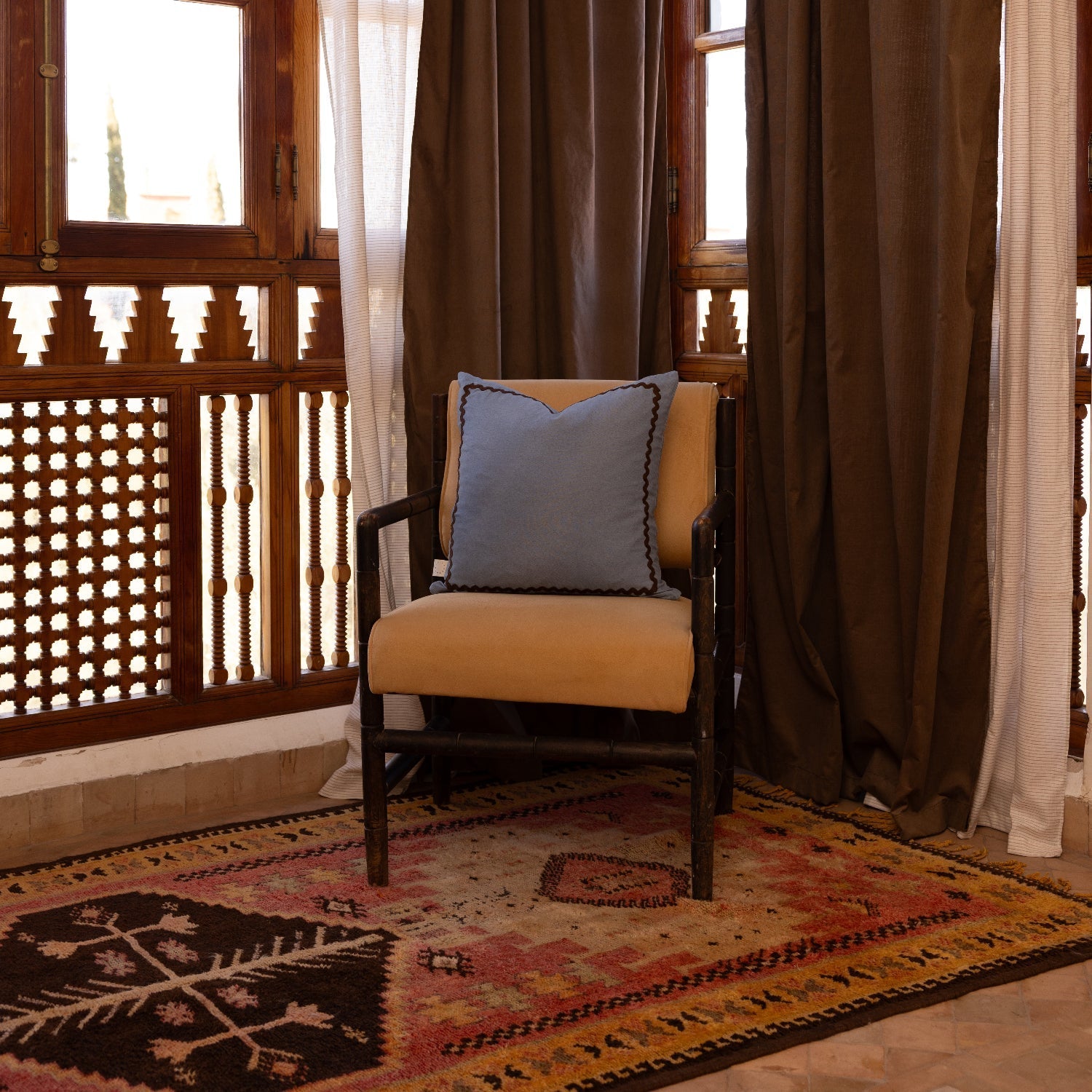 Blue Linen Pillow with Ric-Rac Trim