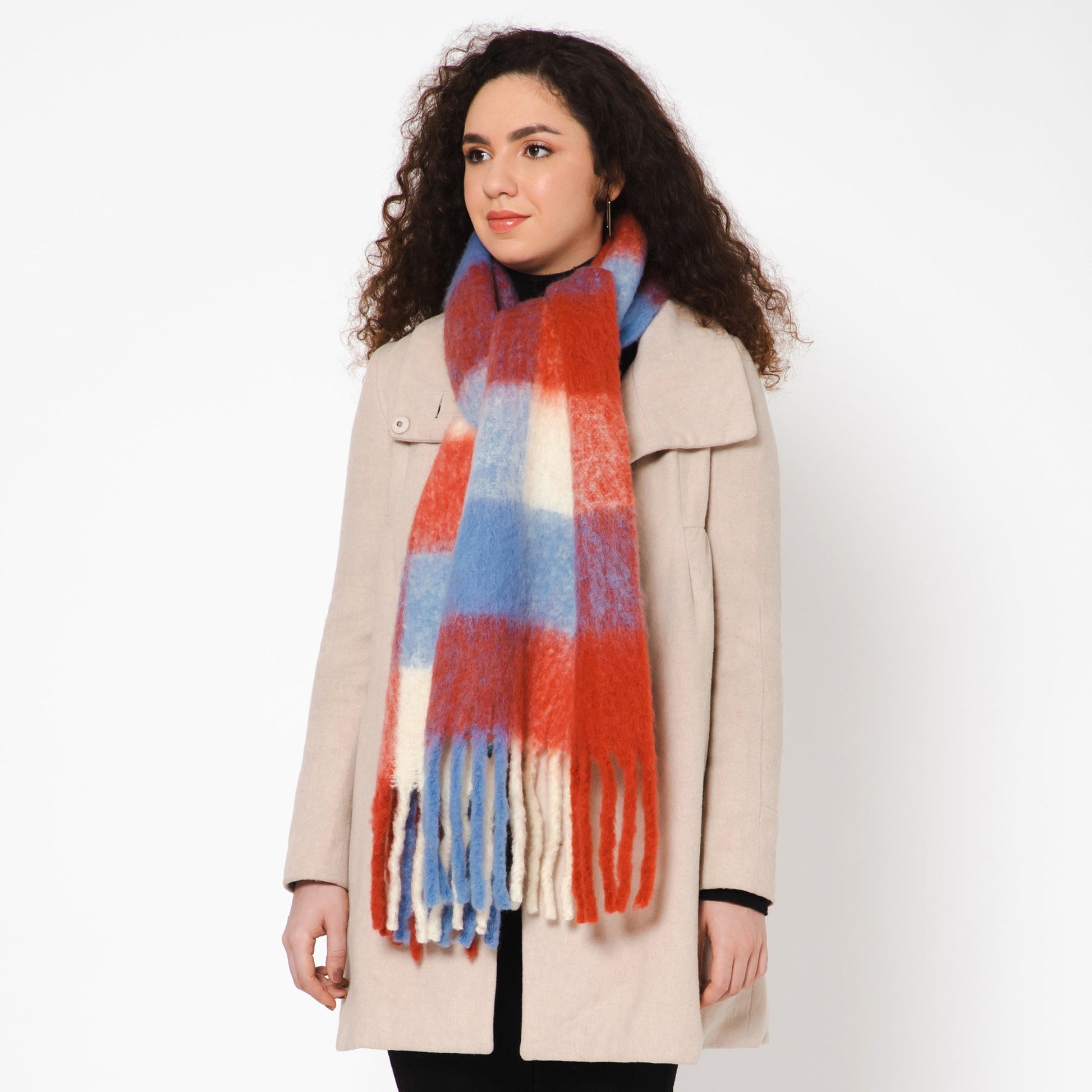 Brushed Checkered Print Scarf - Lilac Red