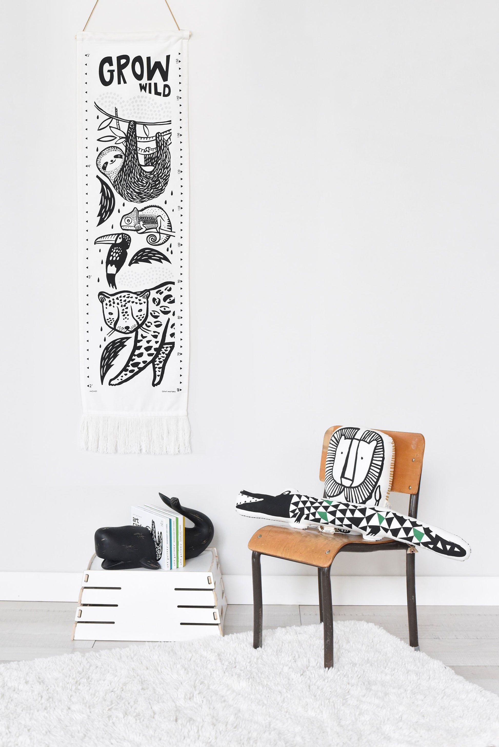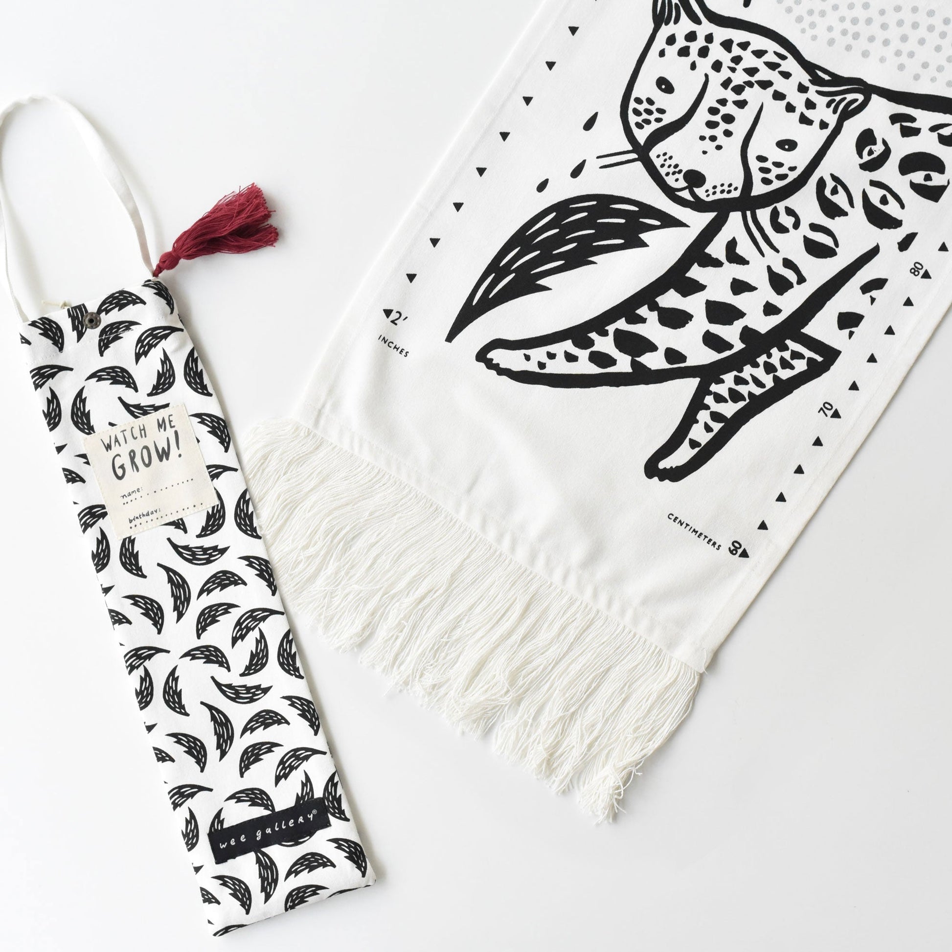 This organic cotton fabric Growth Chart features wild jungle animals that smile as your little one grows. The natural materials and lovely illustrations make it perfect wall tapestry accent to a stylish nursery, bedroom, or play room decor. Easily mount on a hook or nail, the twine makes it easy to move when needed.