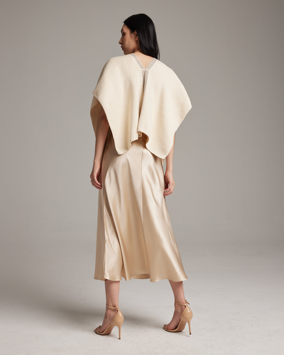 Handwoven poncho in Pima Cotton with delicate center detail. One Size Fits All.